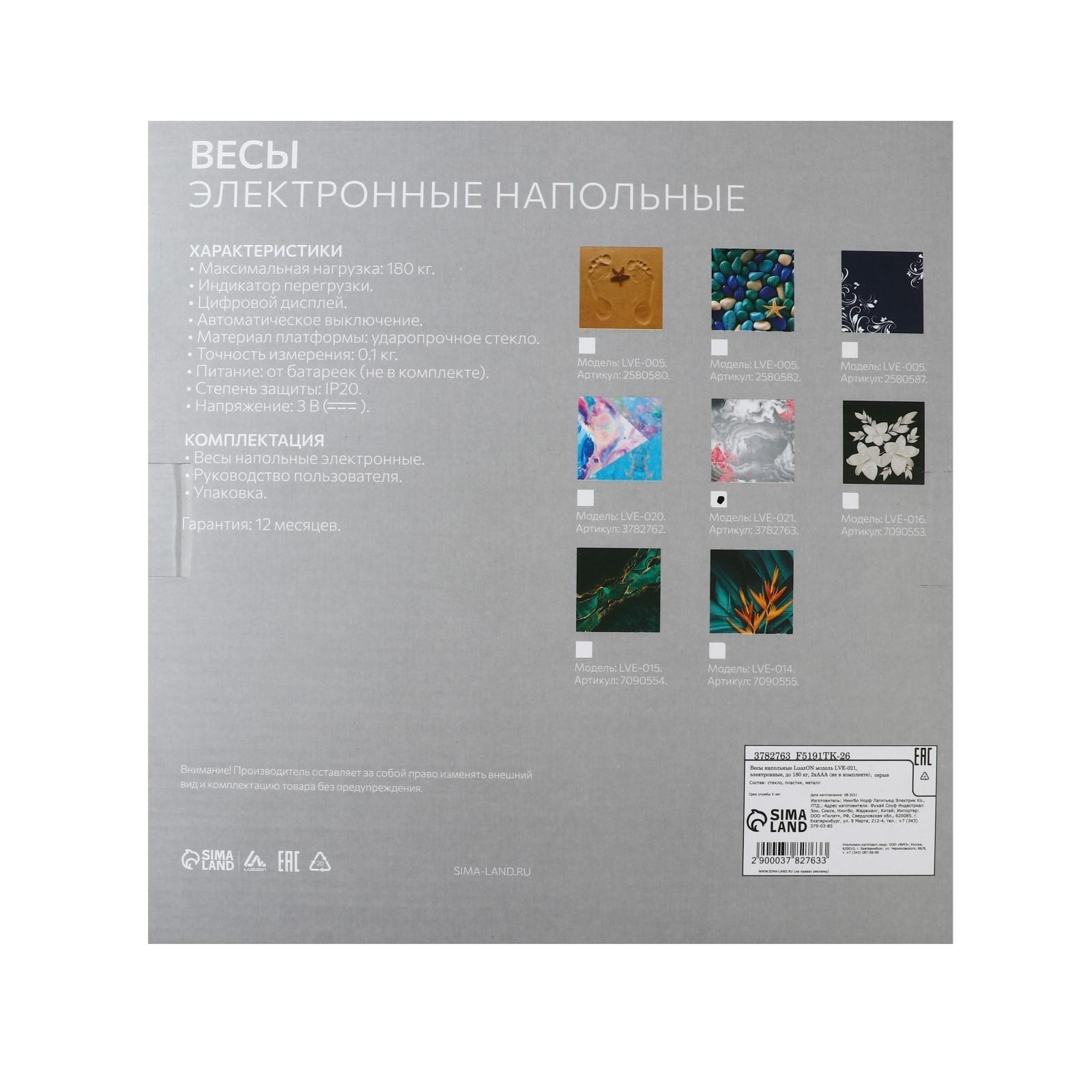 Весы напольные Luazon LVE-021, электронные, до 180 кг, 2хAAА (не в комплекте)