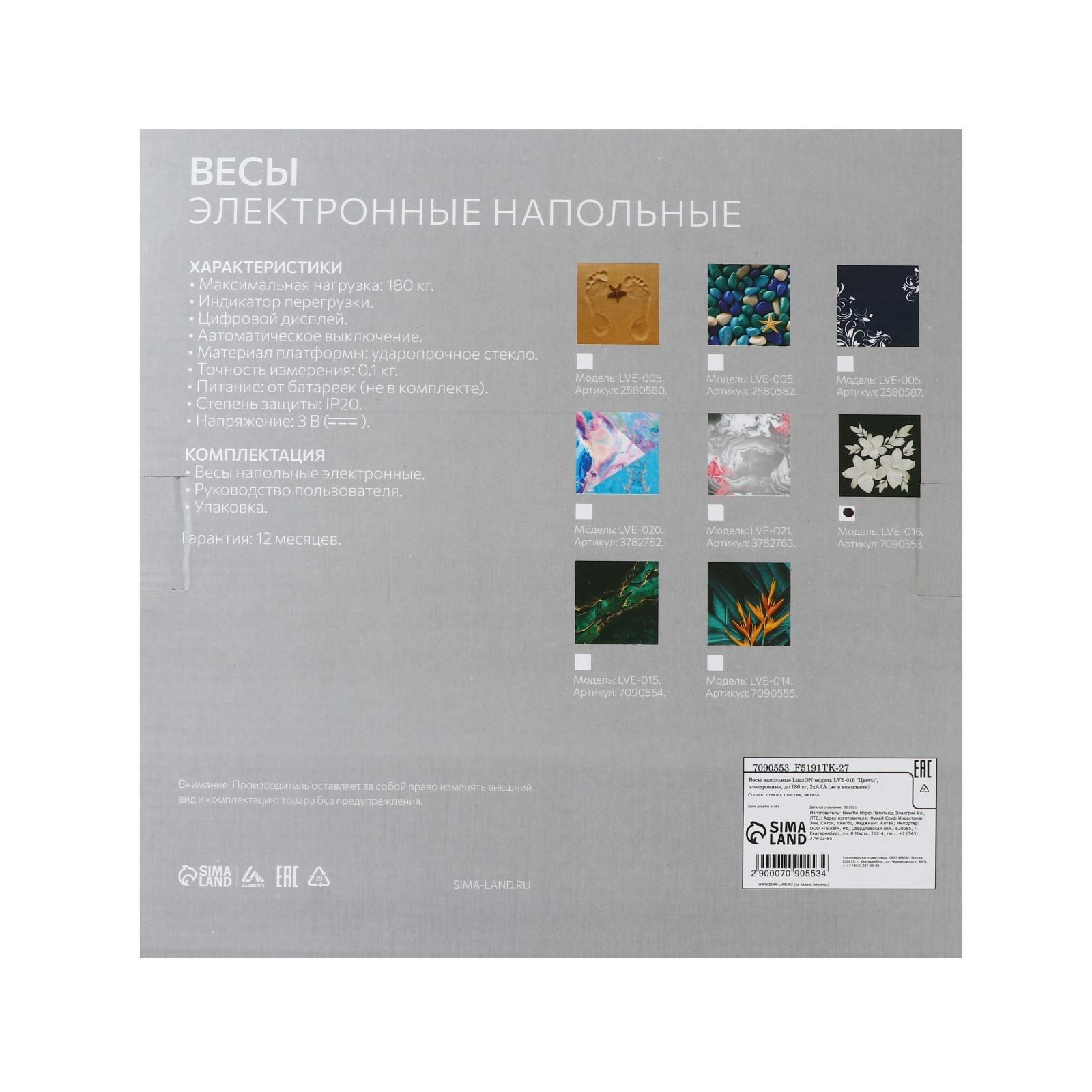 Весы напольные Luazon LVE-016 "Цветы", электронные, до 180 кг, 2хAAА (не в комплекте)