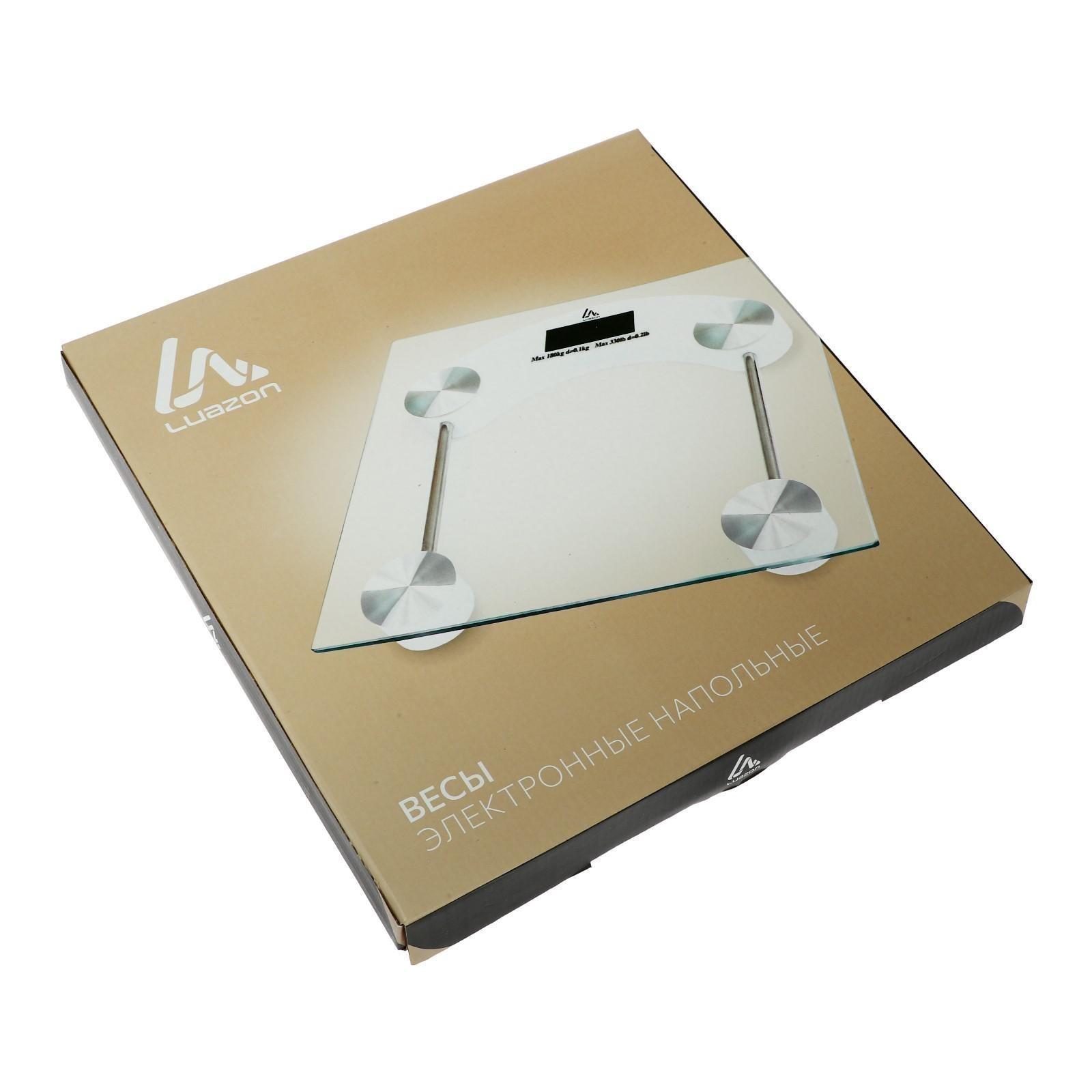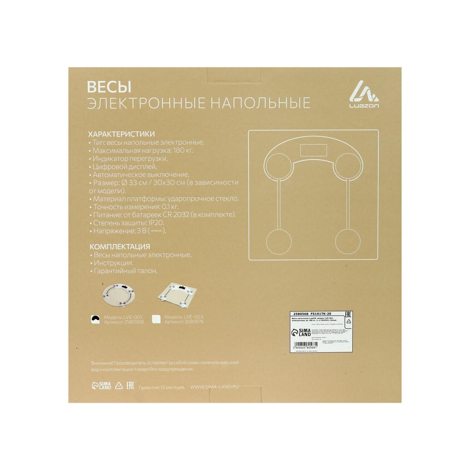 Весы напольные Luazon LVE-001, электронные, до 180 кг, 1хCR2032, стекло, белые