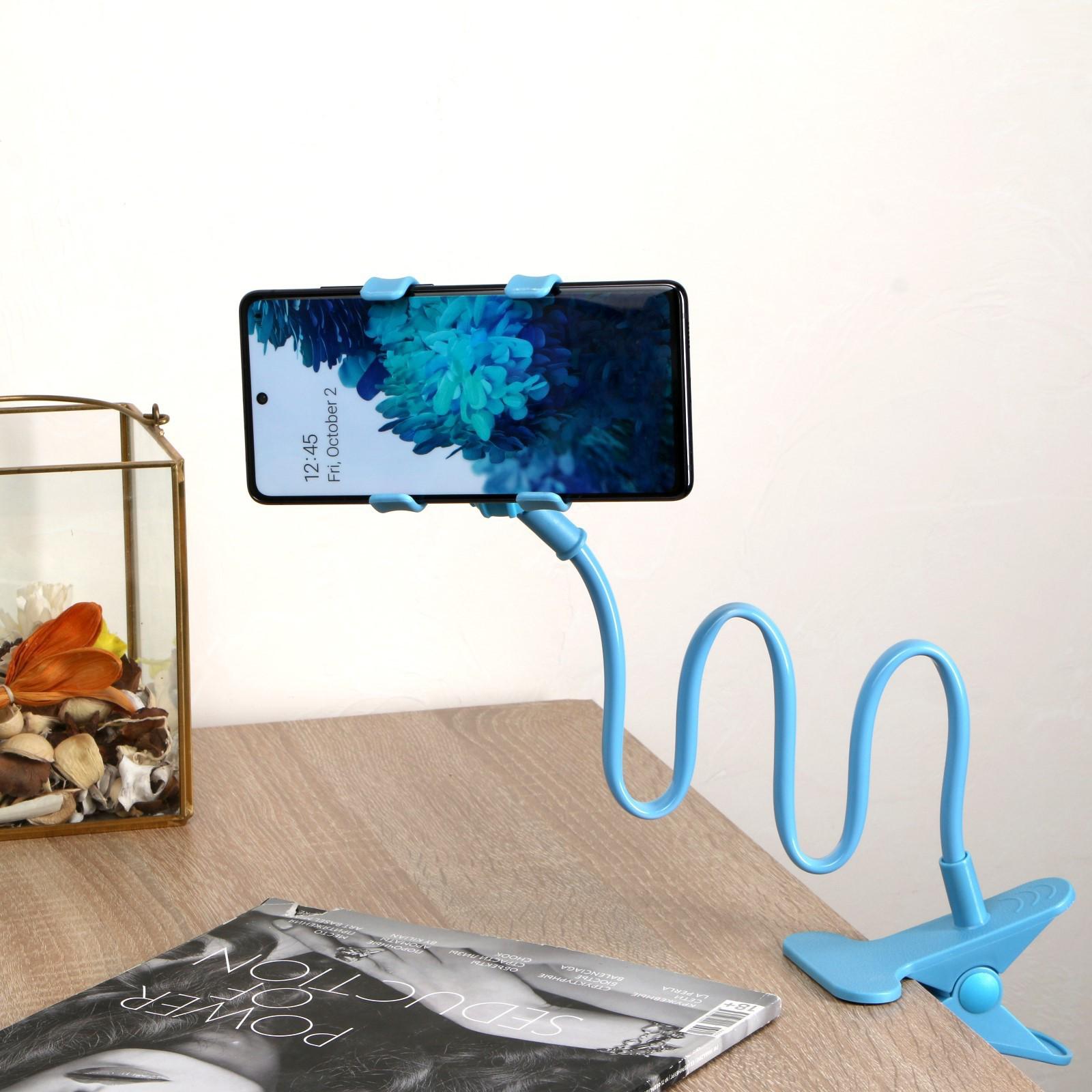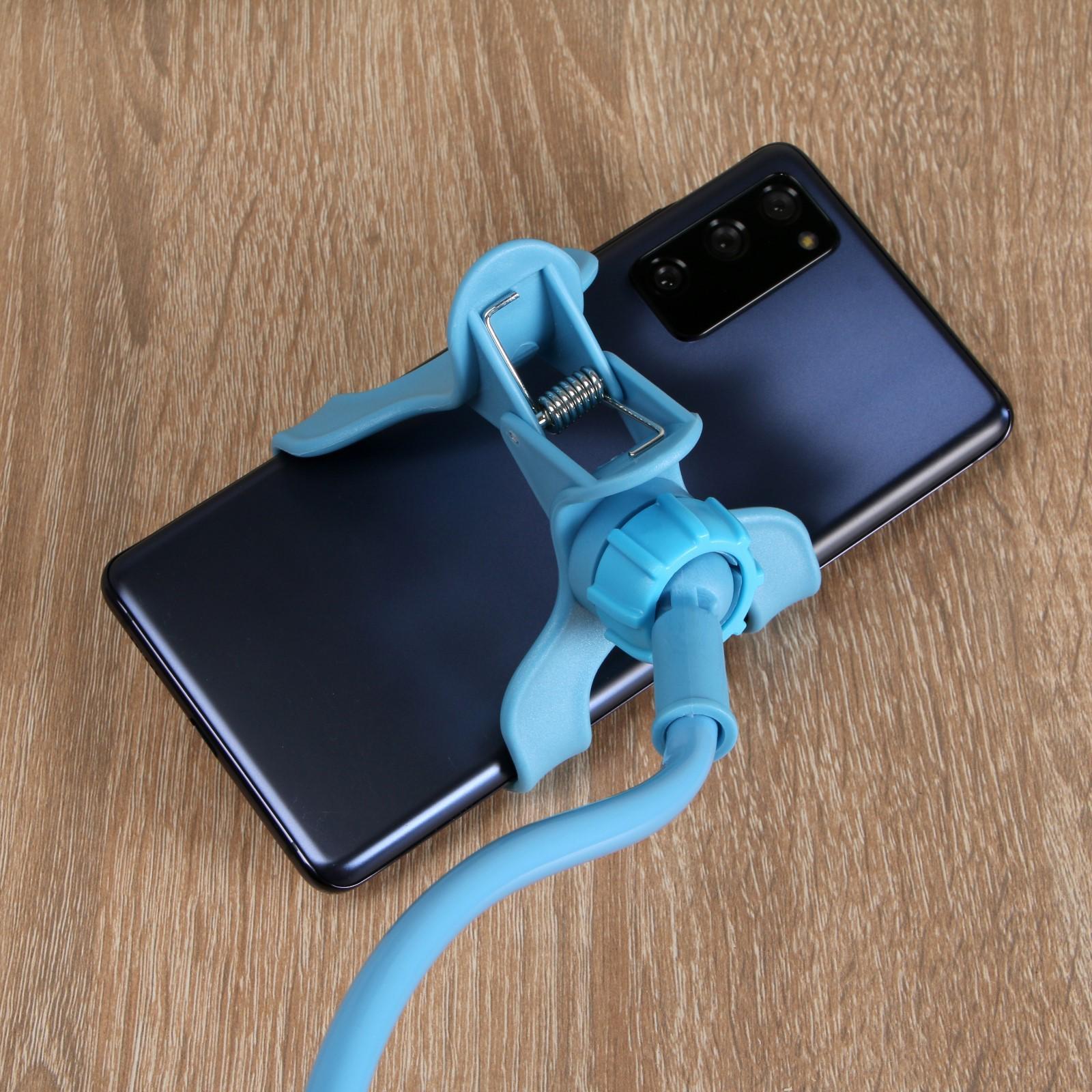 Держатель-прищепка, гибкий,регулируемый, для смартфона 3-7", 80 см, шир. держ. 12 см,голубой