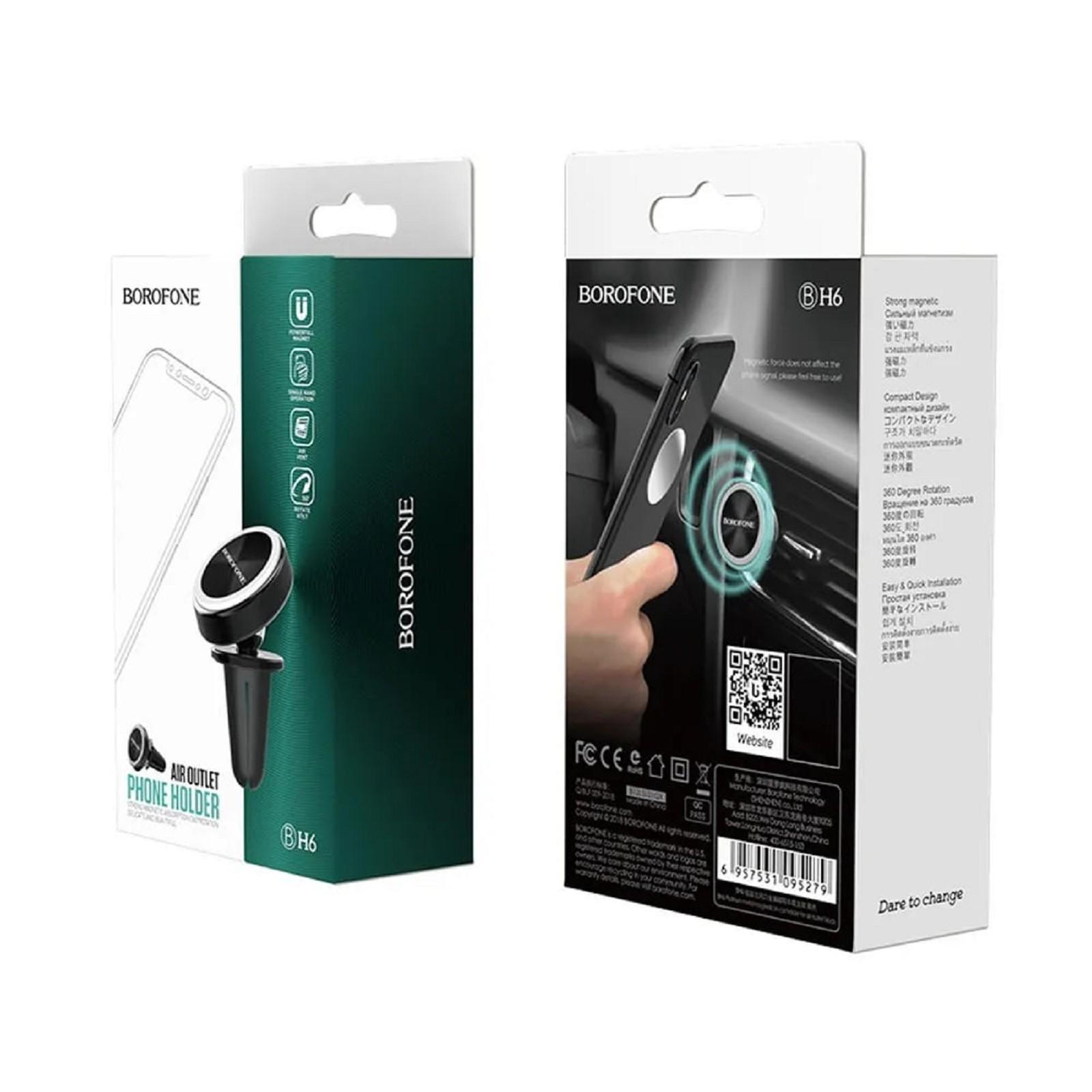 Автомобильный держатель Borofone BH6, в дефлектор, универсальный, магнитный, чёрный