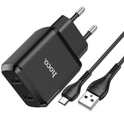 Сетевое зарядное устройство Hoco N7, 2 USB - 2.1 А, кабель microUSB 1 м, черный