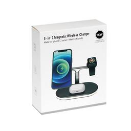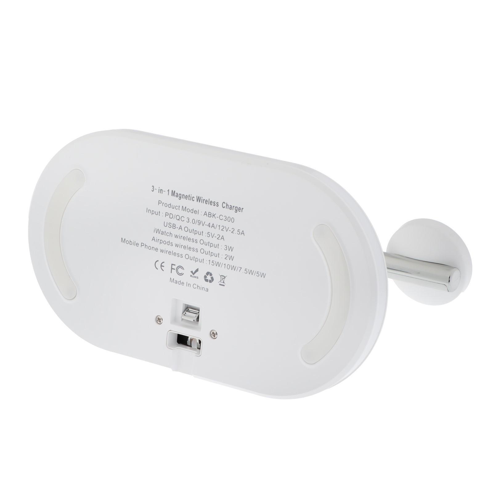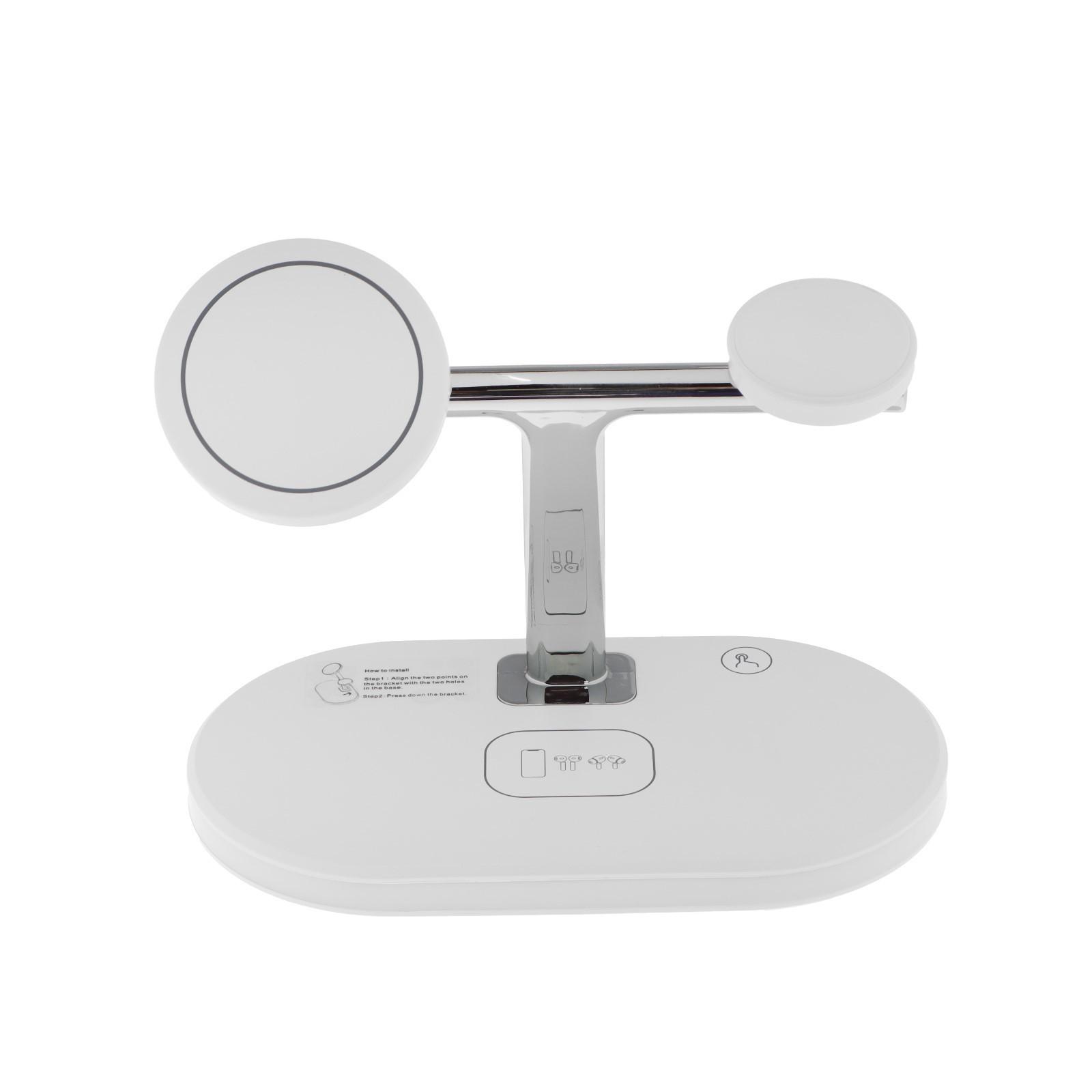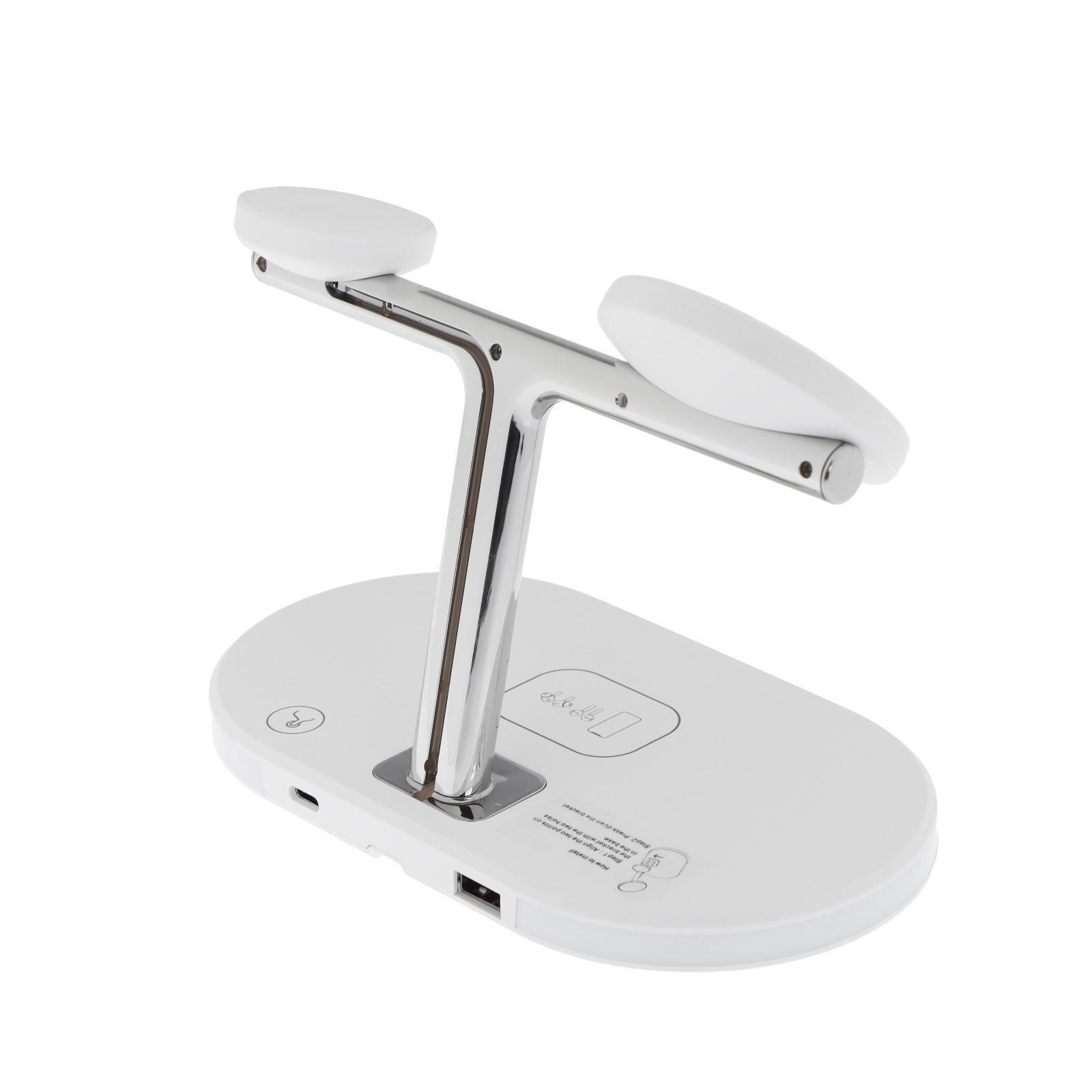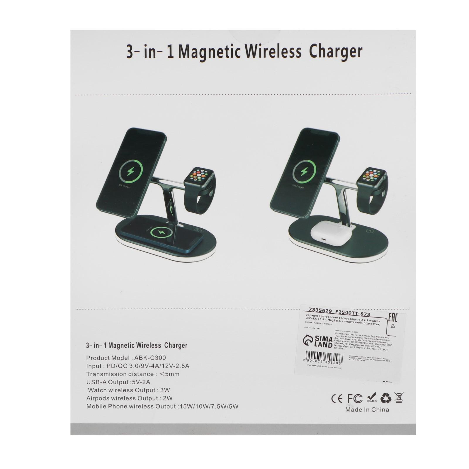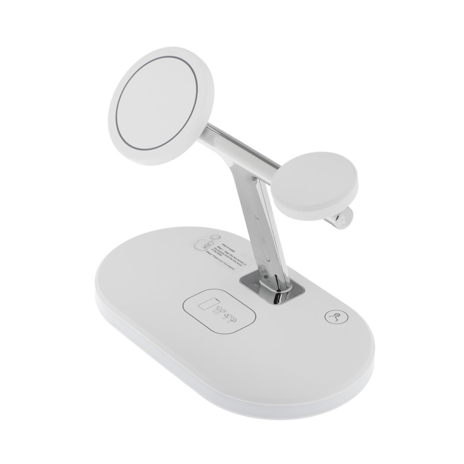 Беспроводная зарядная станция 3 в 1 LCC-83, 15 Вт, MagSafe, с подставкой, подсветка, белая