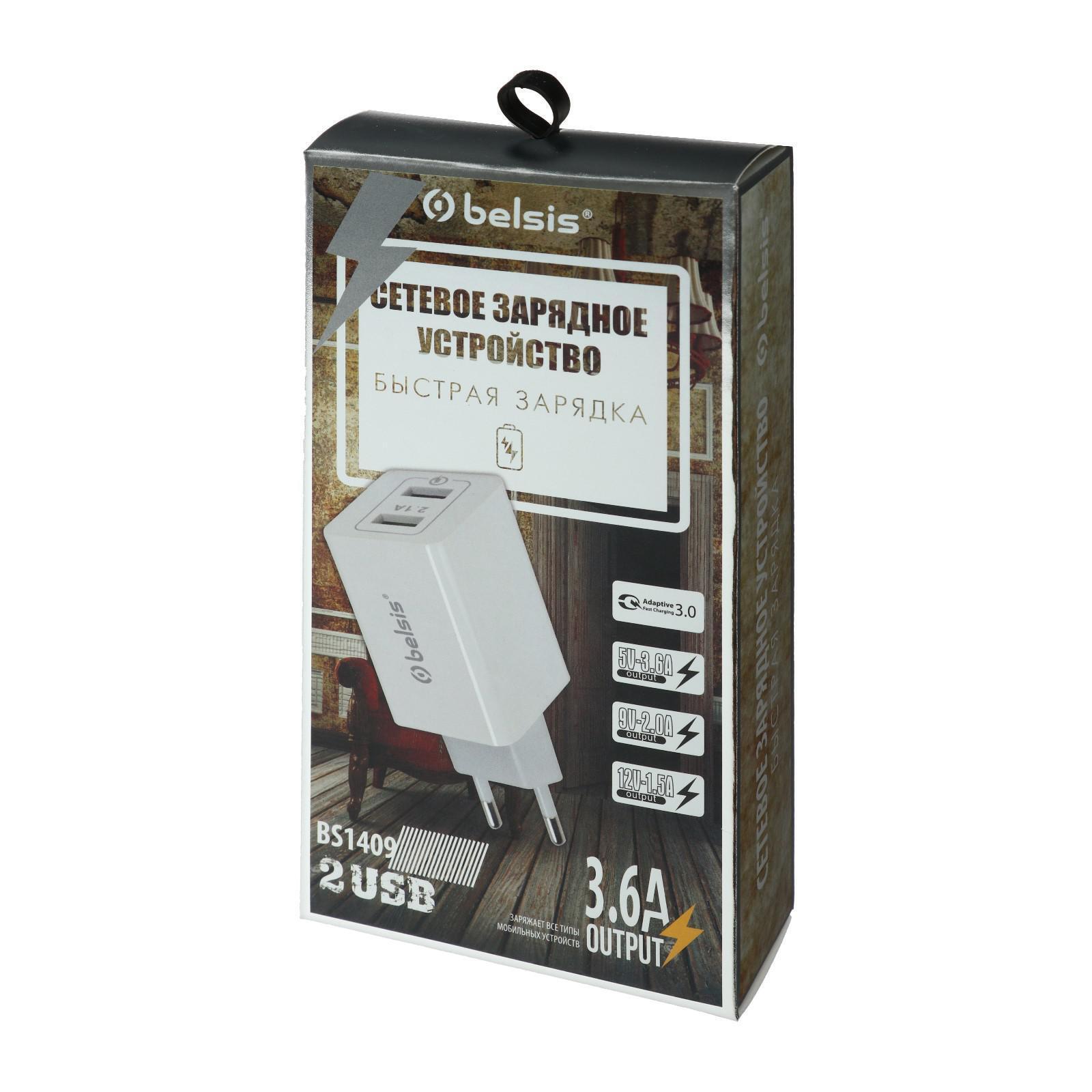 Сетевое зарядное устройство Belsis, 2хUSB, 3.6 А, QC 3.0, белое