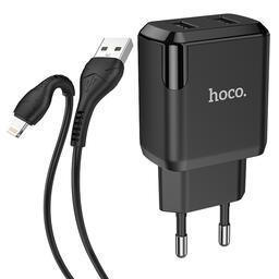 Сетевое зарядное устройство Hoco N7, 2 USB - 2.1 А, кабель Lightning 1 м, черный