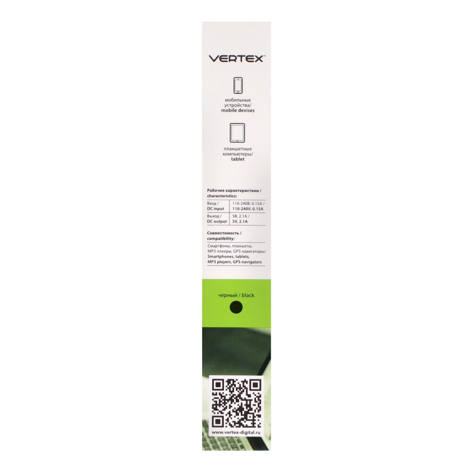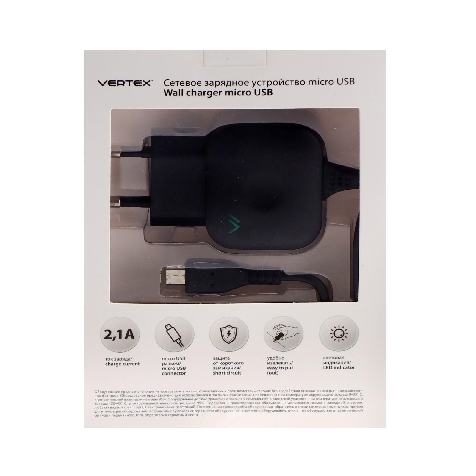 Сетевое зарядное устройство Vertex Slim Line, 2.1 А, кабель microUSB, черное