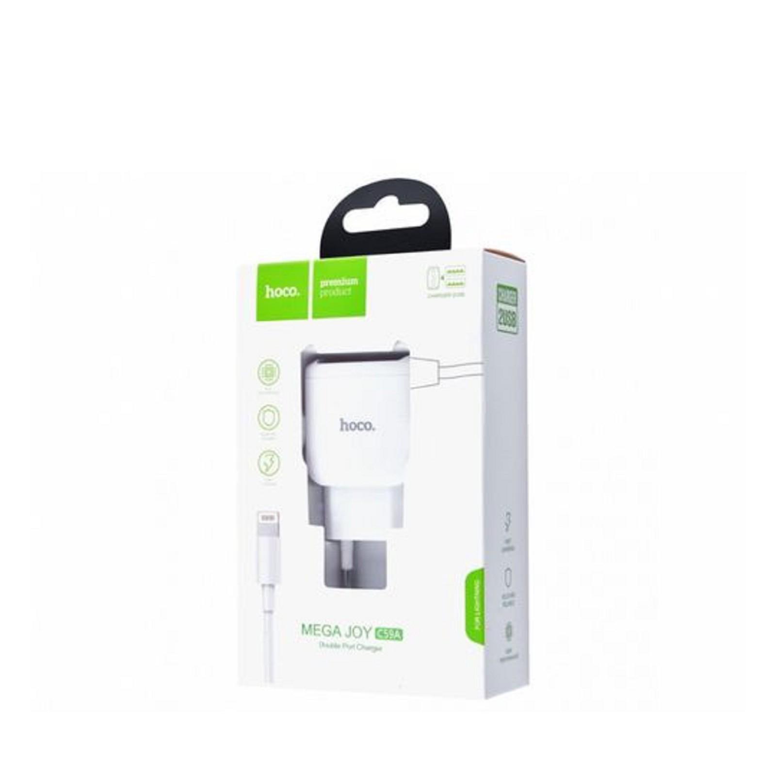 Сетевое зарядное устройство Hoco C59A, 2 USB - 2.4 А, кабель Lightning 1 м, белый