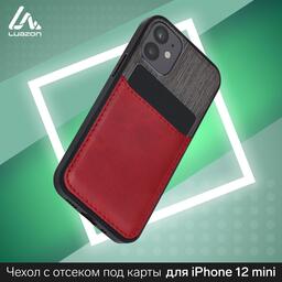 Чехол LuazON для iPhone 12 mini, с отсеком под карты, текстиль+кожзам, красный