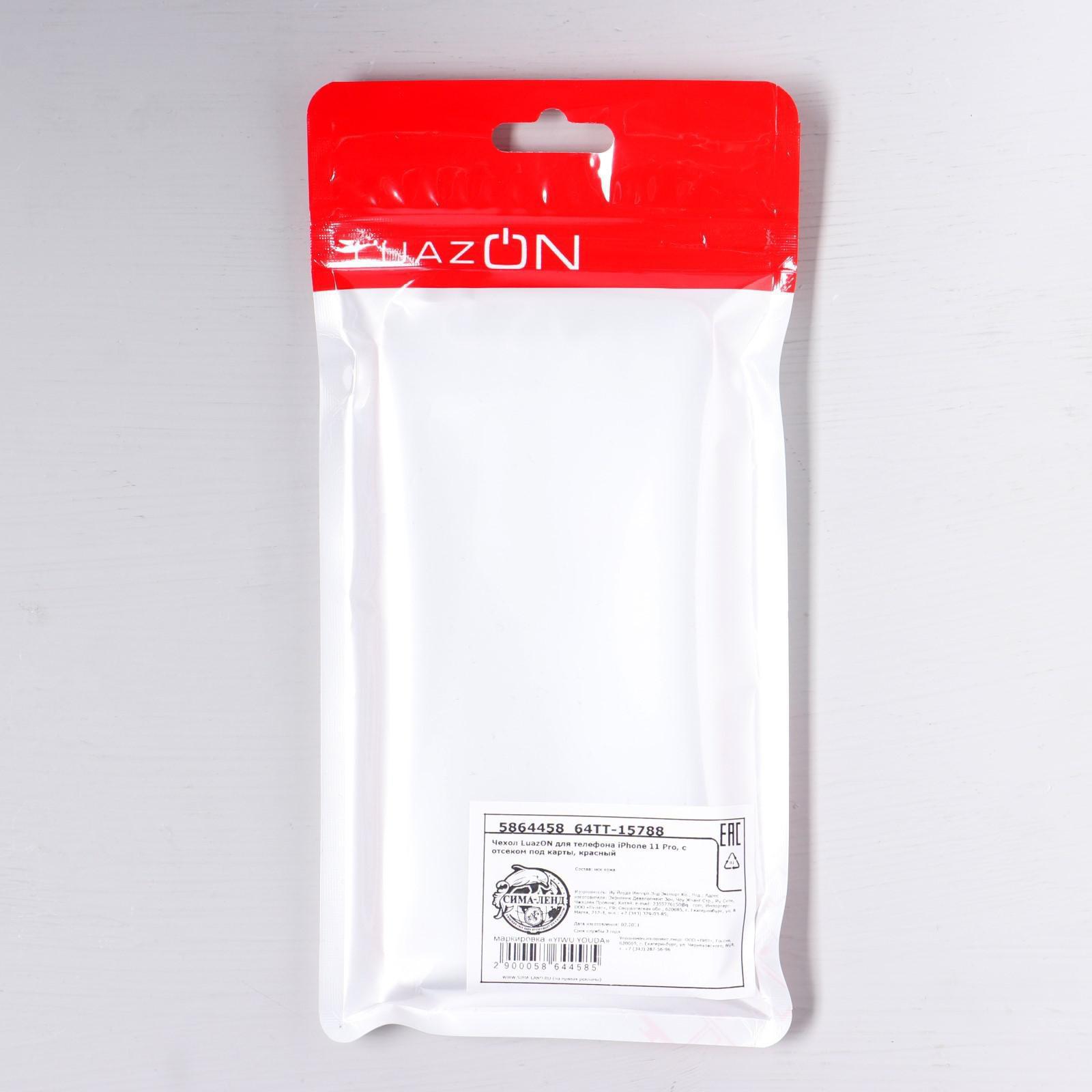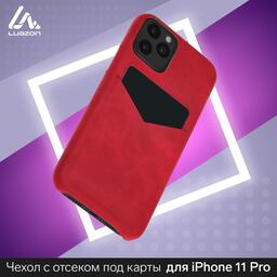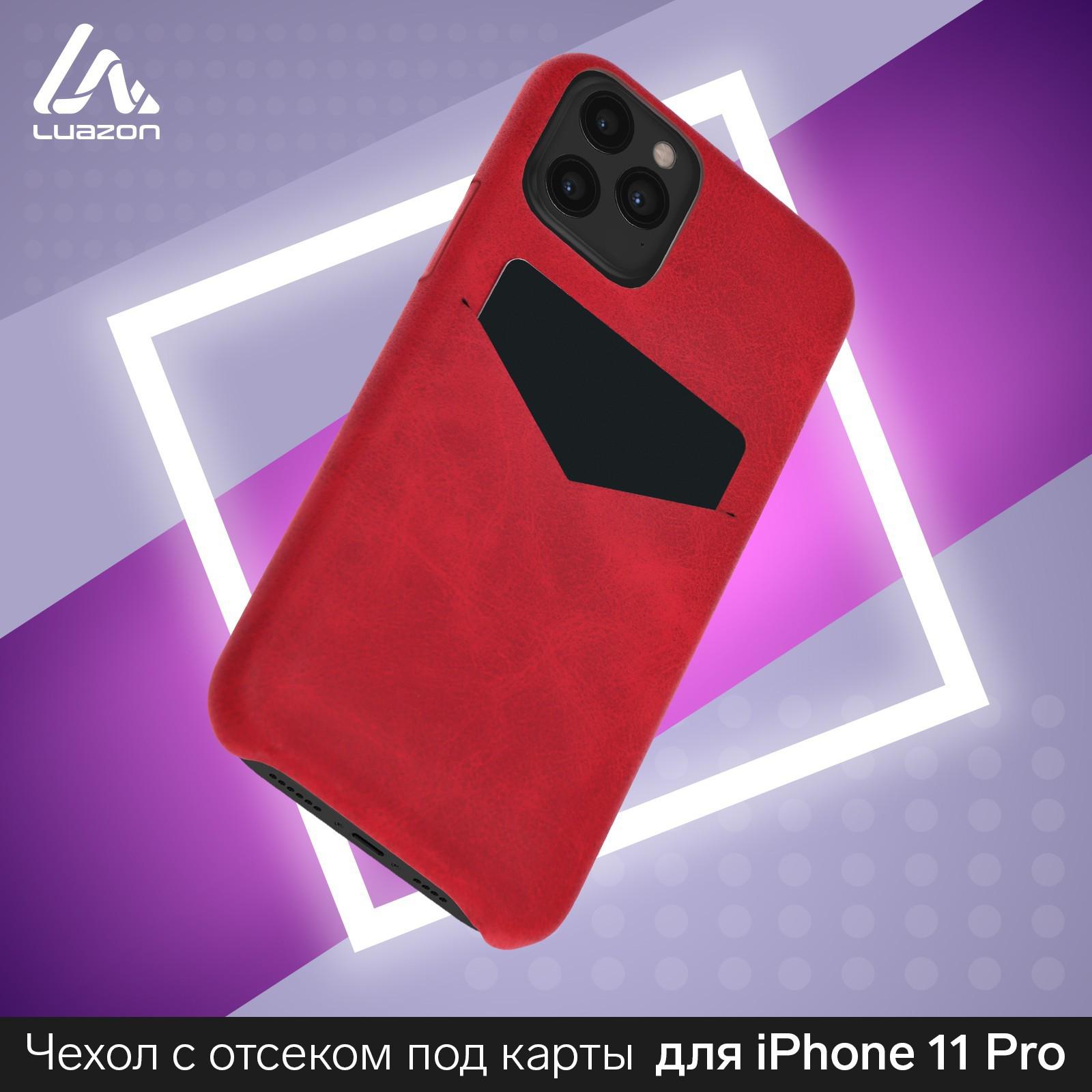 Чехол LuazON для iPhone 11 Pro, с отсеком под карты, кожзам, красный