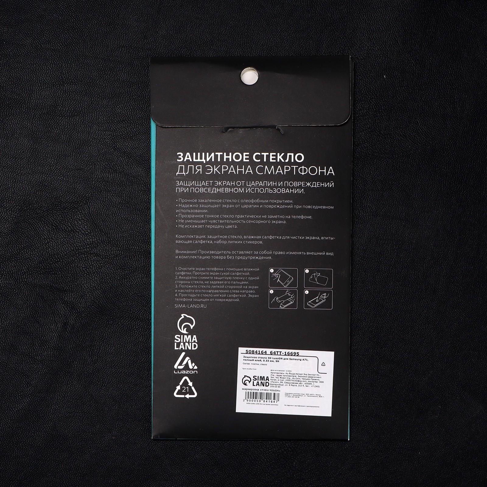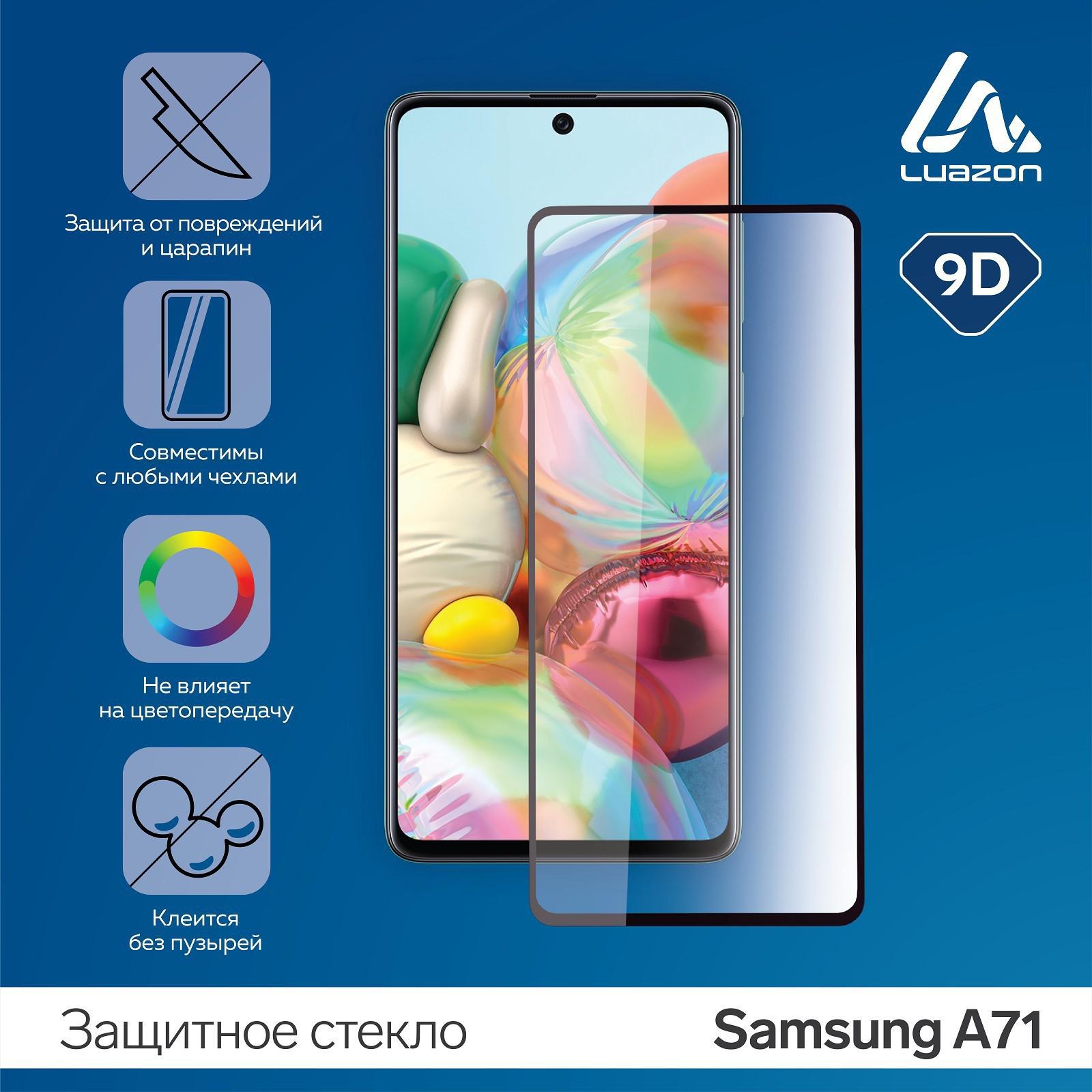 Защитное стекло 9D LuazON для Samsung A71, полный клей, 0.33 мм, 9Н