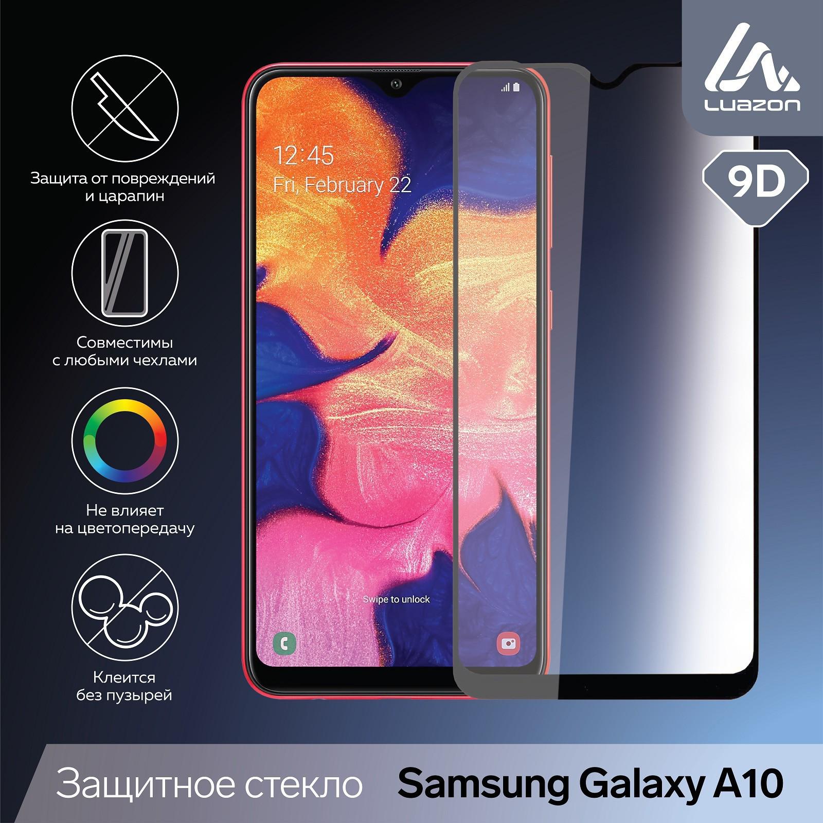 Защитное стекло 9D LuazON для Samsung A10, полный клей, 0.33 мм, 9Н
