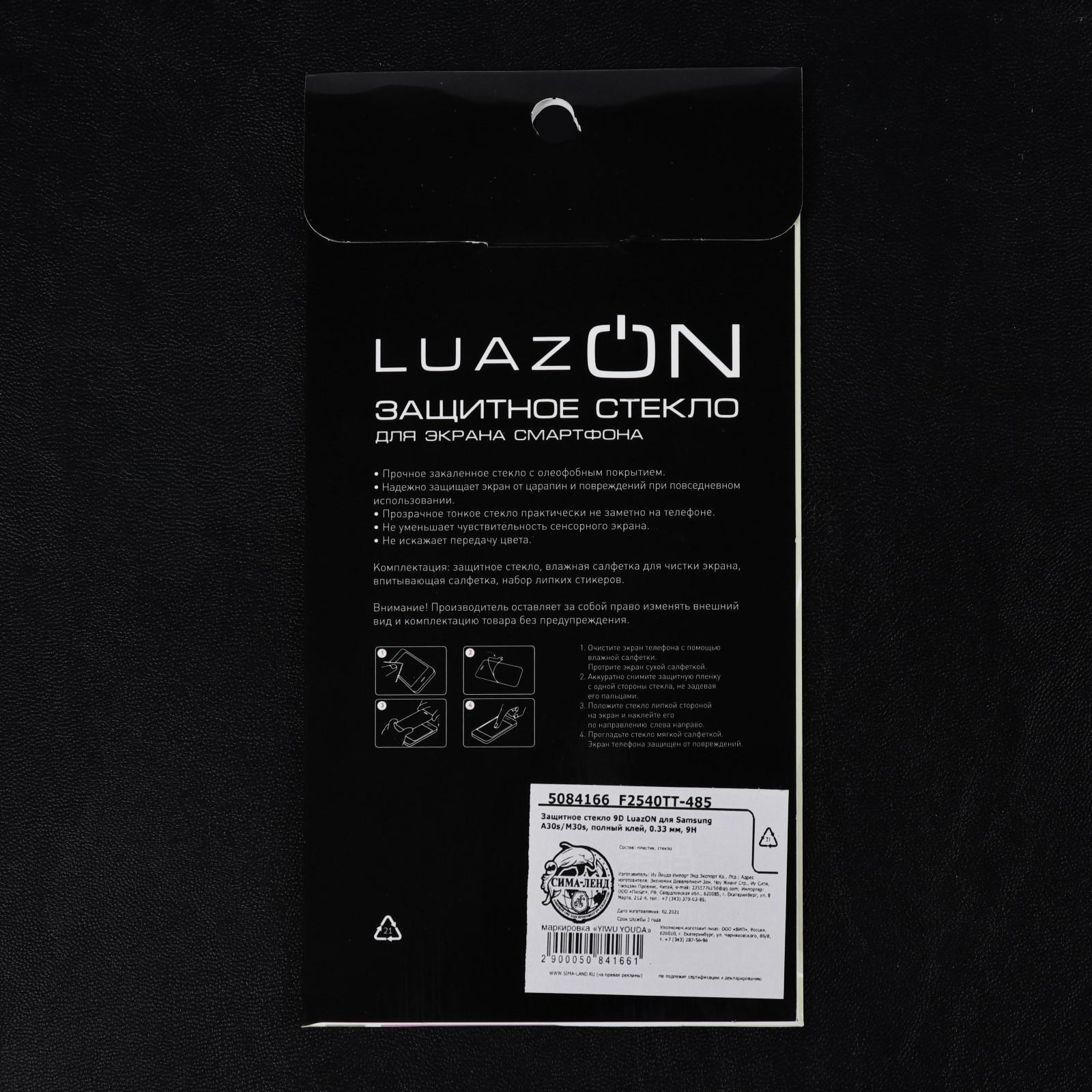 Защитное стекло 9D LuazON для Samsung A30s/M30s, полный клей, 0.33 мм, 9Н
