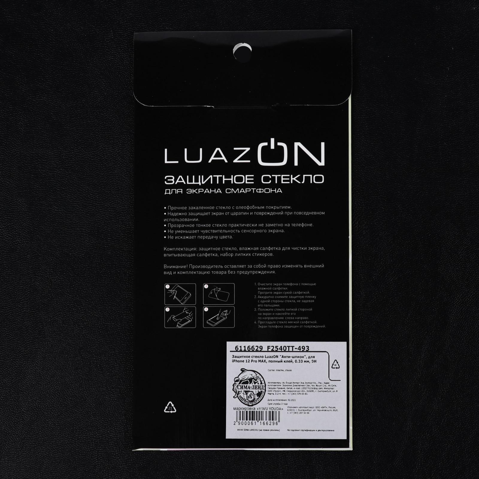 Защитное стекло LuazON "Анти-шпион",для iPhone 12 Pro MAX,полный клей,0.33 мм, 9Н