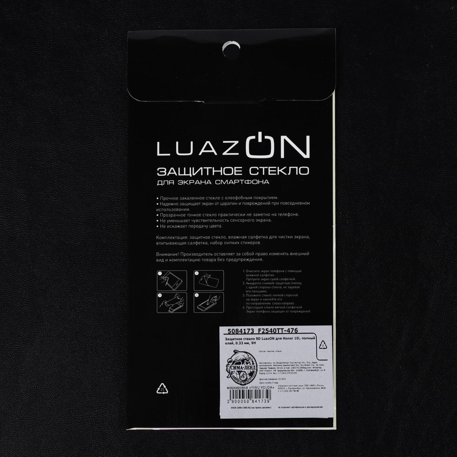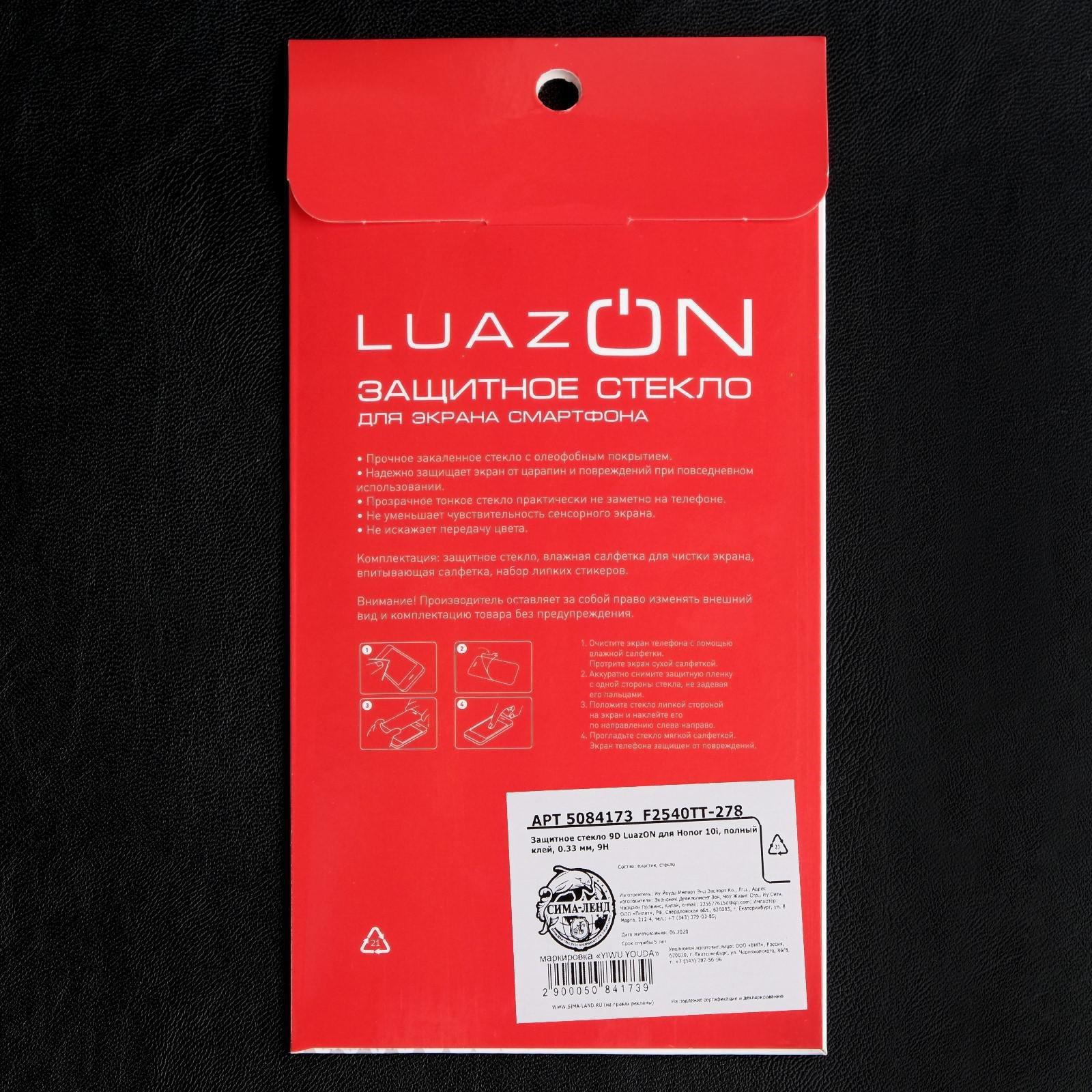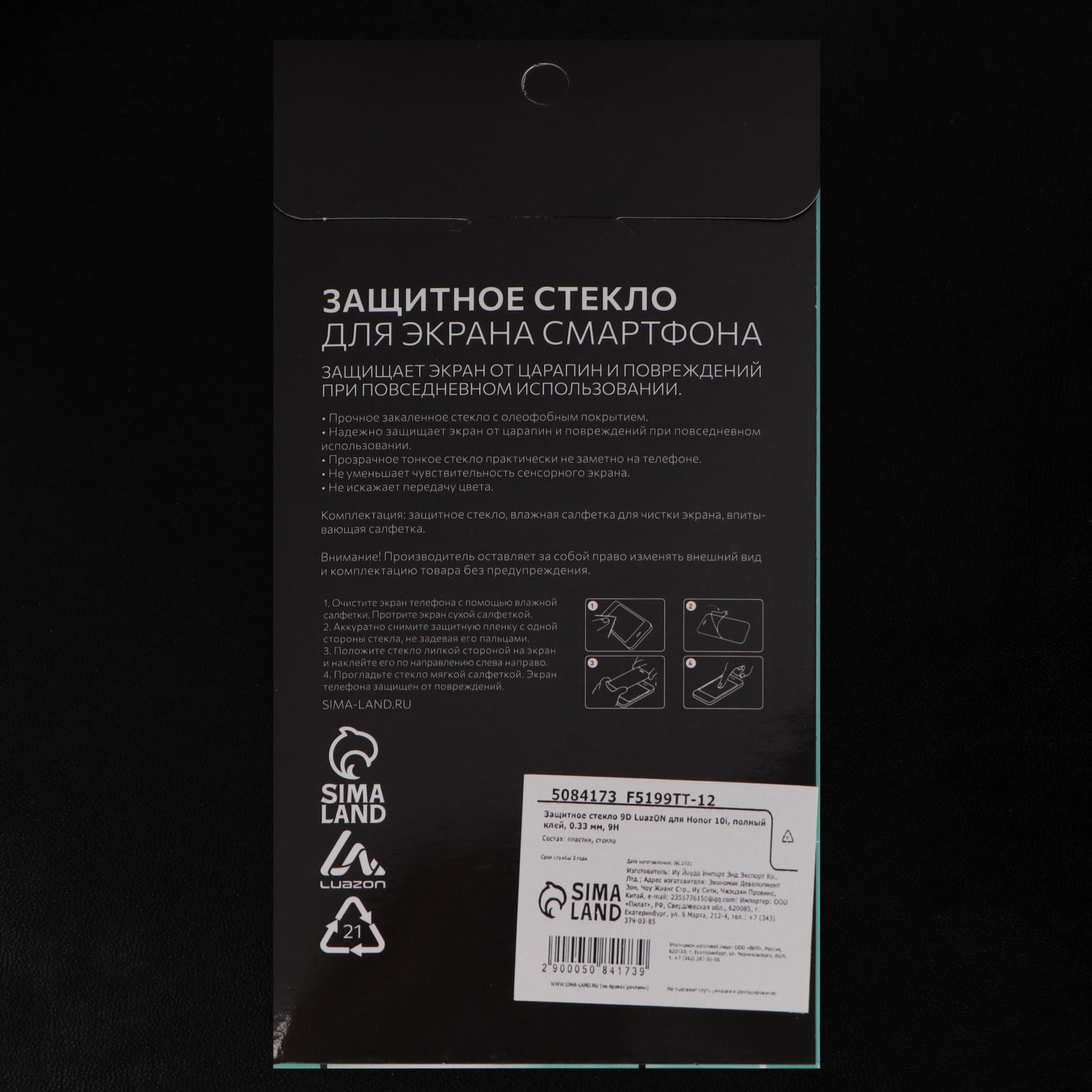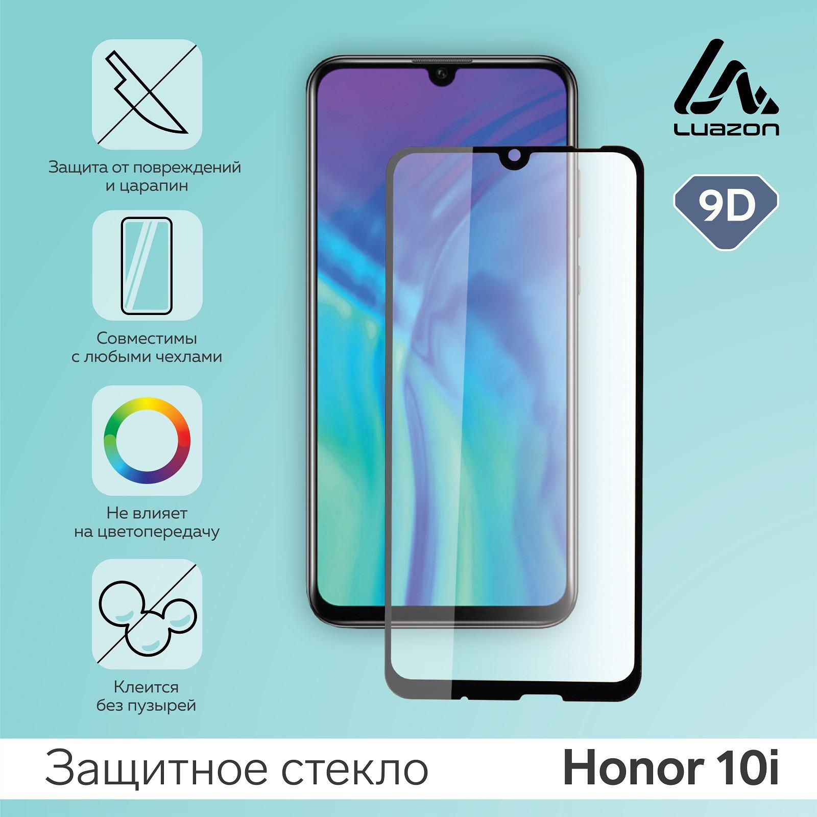 Защитное стекло 9D LuazON для Honor 10i, полный клей, 0.33 мм, 9Н, черное