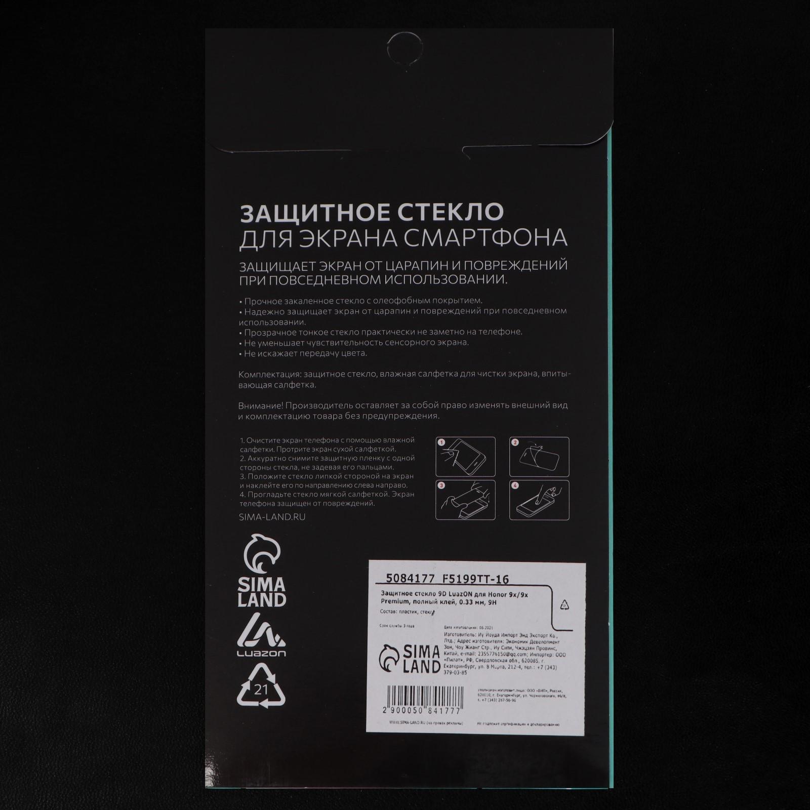 Защитное стекло 9D LuazON для Honor 9x/9x Premium, полный клей, 0.33 мм, 9Н