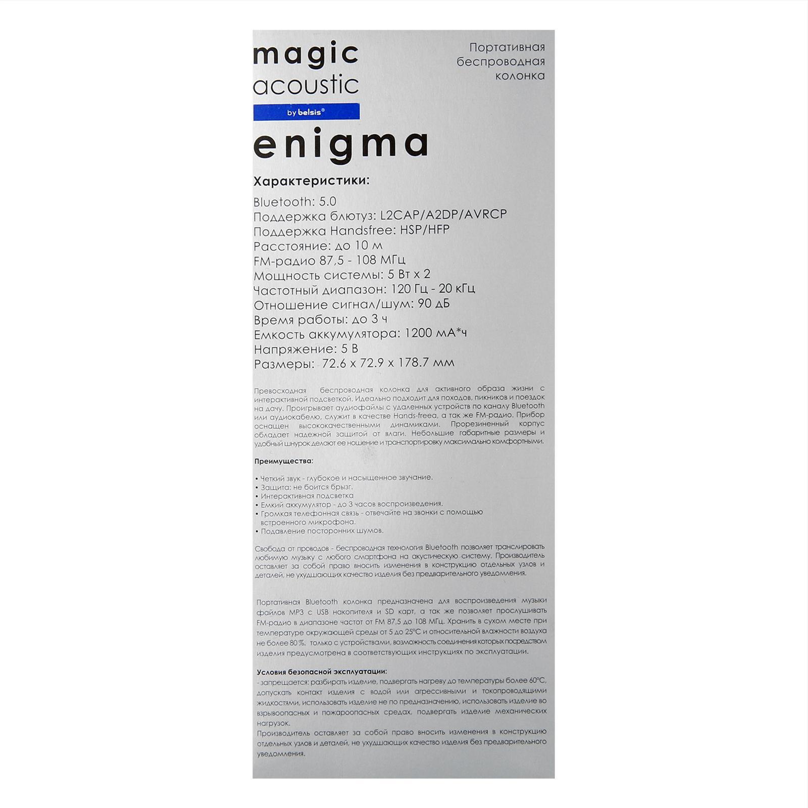 Портативная колонка Belsis обладает интерактивной подсветкой и подойдёт для людей ведущих активный образ жизни. Берите устройство с собой на пикник, в поход или на дачу. Подключайтесь по аудиопроводу или через Bluetooth и слушайте любимую музыку, подкасты, аудиокниги или FM-радио. Надёжная защита от брызг воды позволяет брать устройство на пляж. Высококачественные динамики обеспечивают глубокое и насыщенное звучание. Встроенный аккумулятор обеспечивает до 3 часов автономной работы. Компактный размер и удобный шнурок делают ношение и транспортировку максимально комфортными.