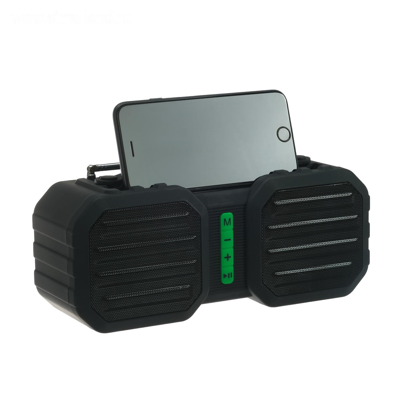 Stand умеет воспроизводить музыку как по bluetooth-соединению, так и проигрывать треки в форматах MP3, WAV, WMA с карты памяти microSD или USB-флешки. Встроенный радио-тюнер позволит прослушивать радио в FM диапазоне 87,5-108 МГц. За насыщенные басы и четкое воспроизведение верхних частот в Stand отвечают два пассивных сабвуфера и два высокочастотных динамика общей мощностью 10 Вт. Для переноски на колонке предусмотрена ручка. Заряда встроенного аккумулятора хватит до 10 часов работы в режиме воспроизведения (зависит от уровня громкости).