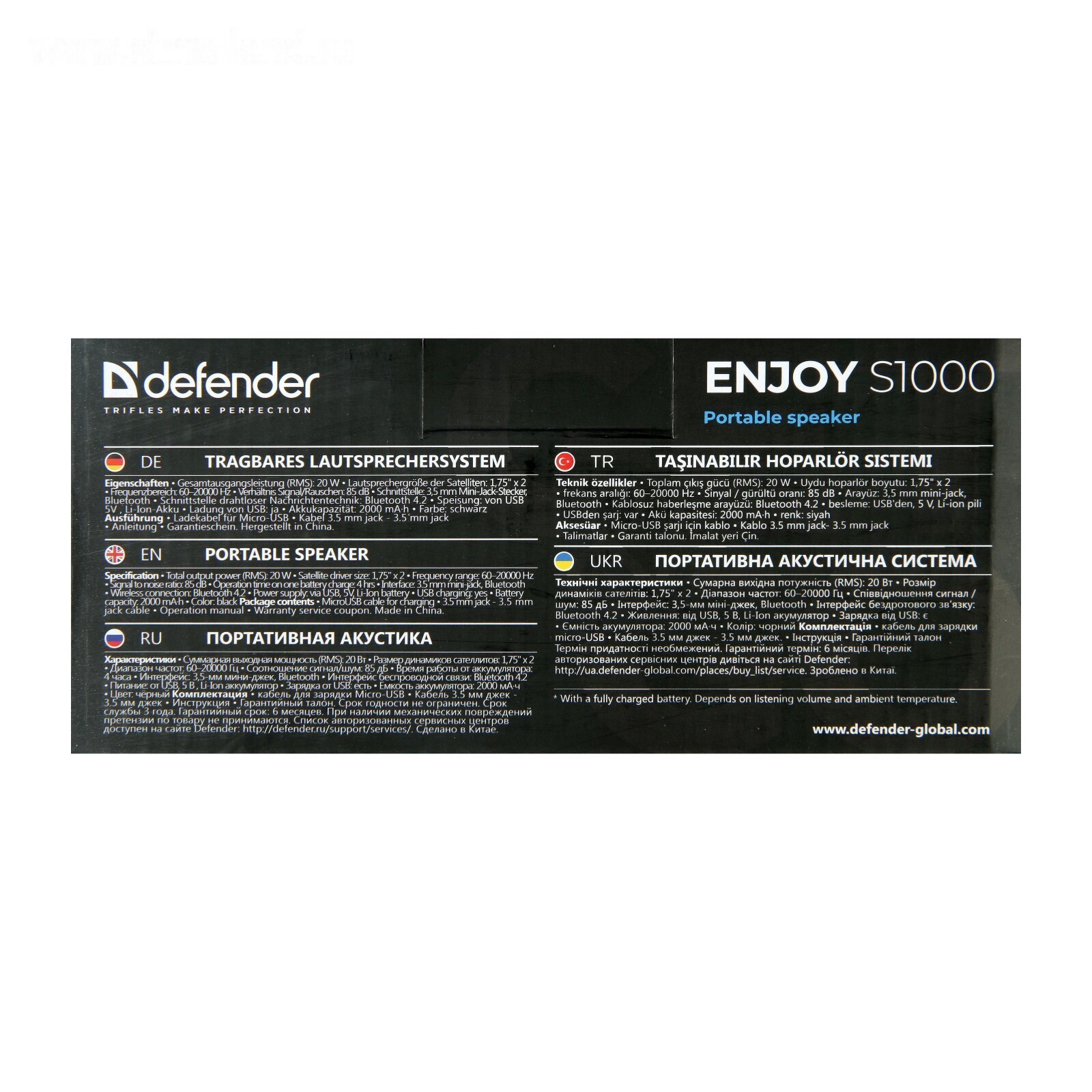 Портативная колонка Defender Enjoy S1000 идеально подходит для людей, ведущих активный образ жизни, которым нужно универсальное устройство дома, на работе и на отдыхе.