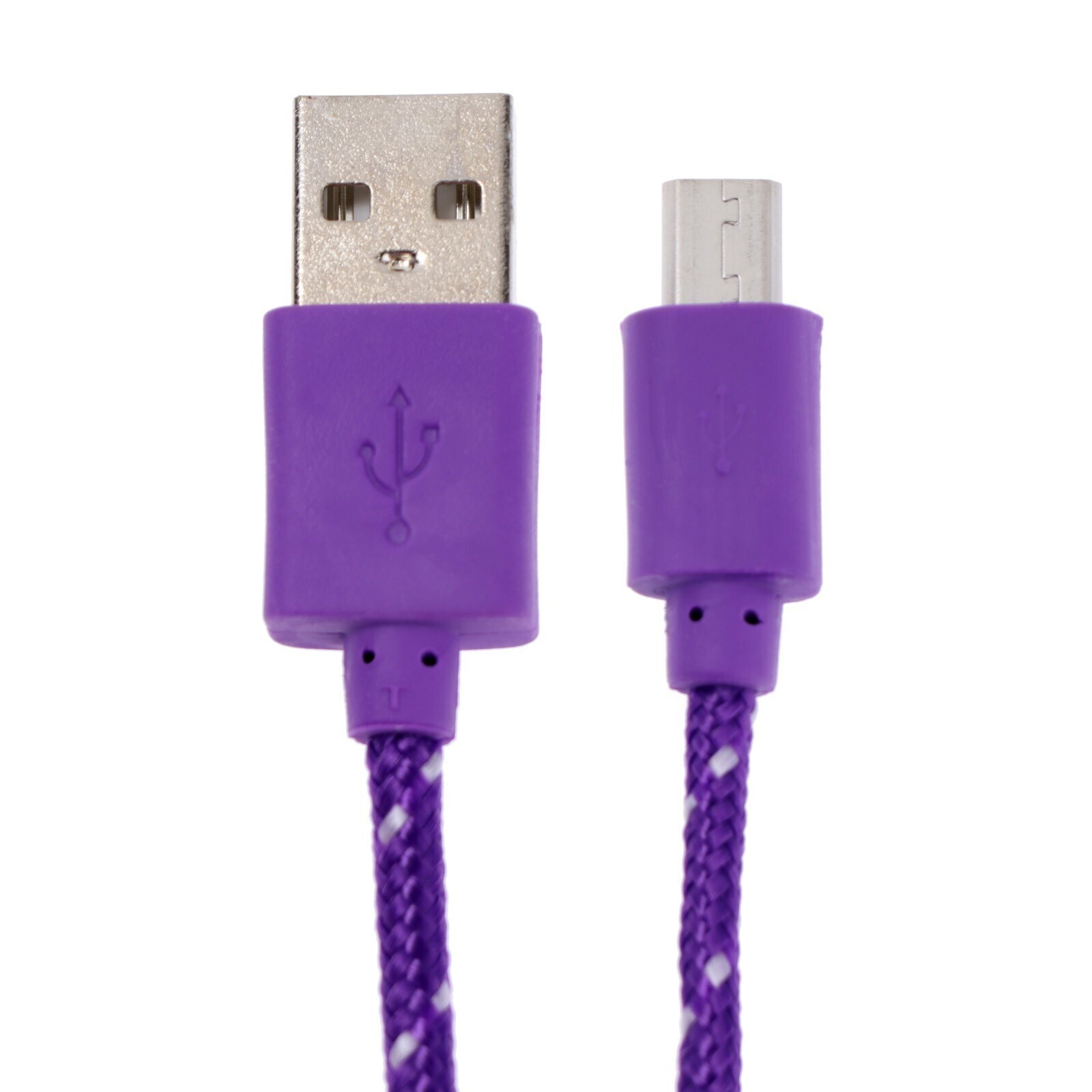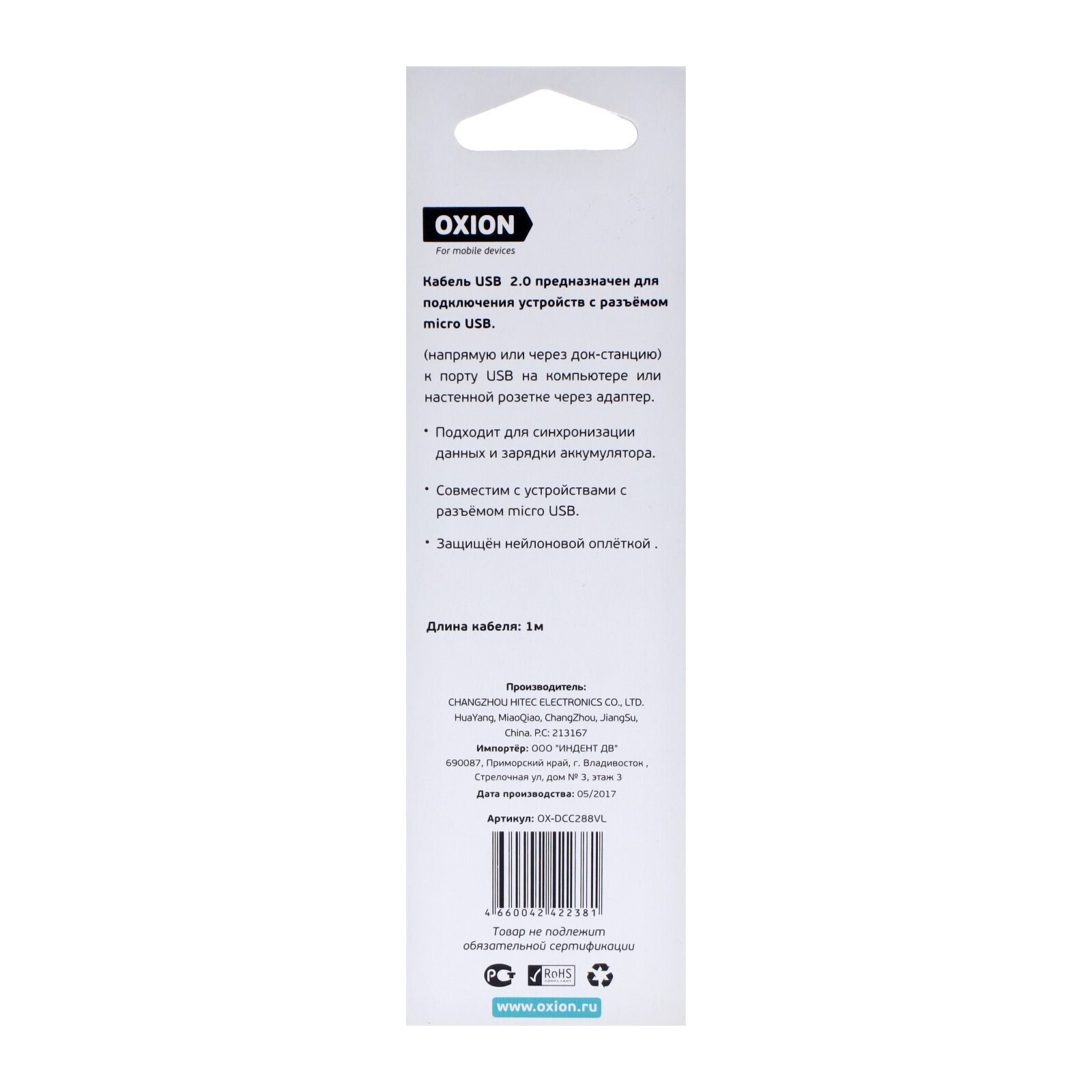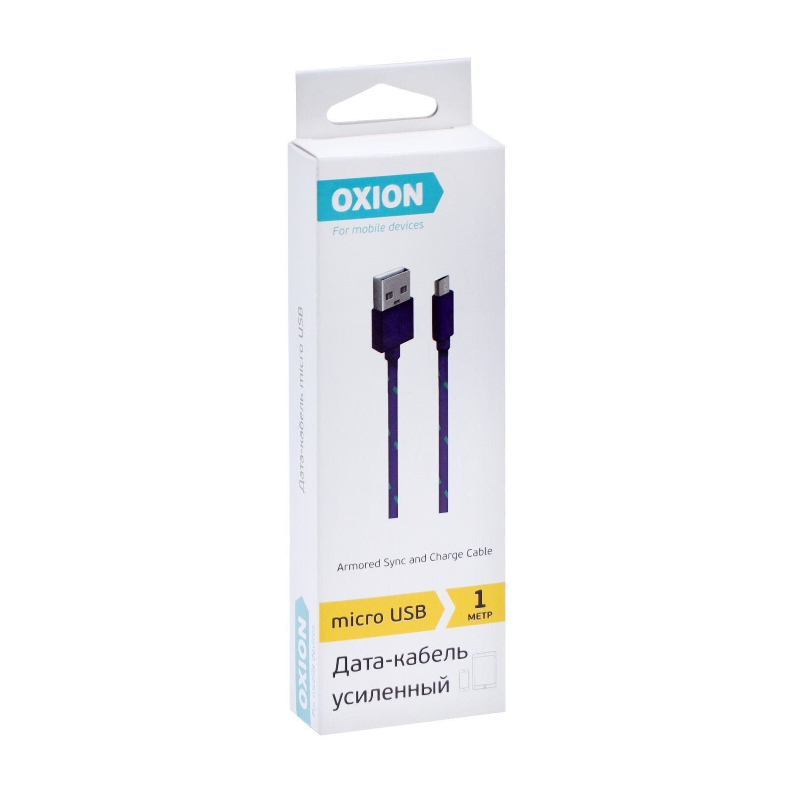 Кабель OXION DCC288, microUSB - USB, зарядка + передача данных, 1 м, оплетка, фиолетовый