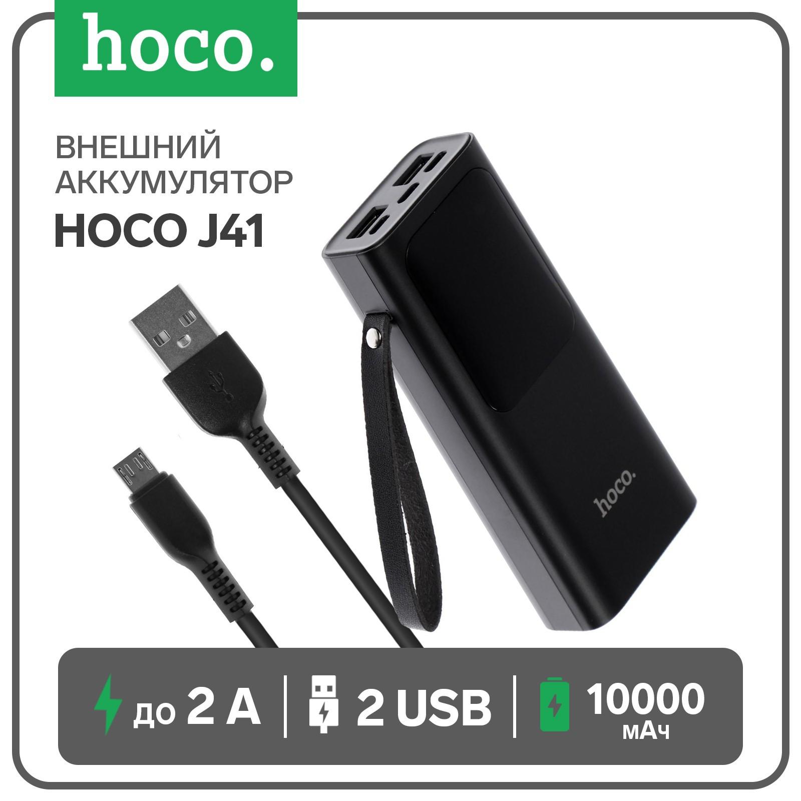 Внешний аккумулятор Hoco J41,10000 мАч,microUSB/Type-C - 2 А, iP - 1.5 А, 2 USB - 2 А,черный