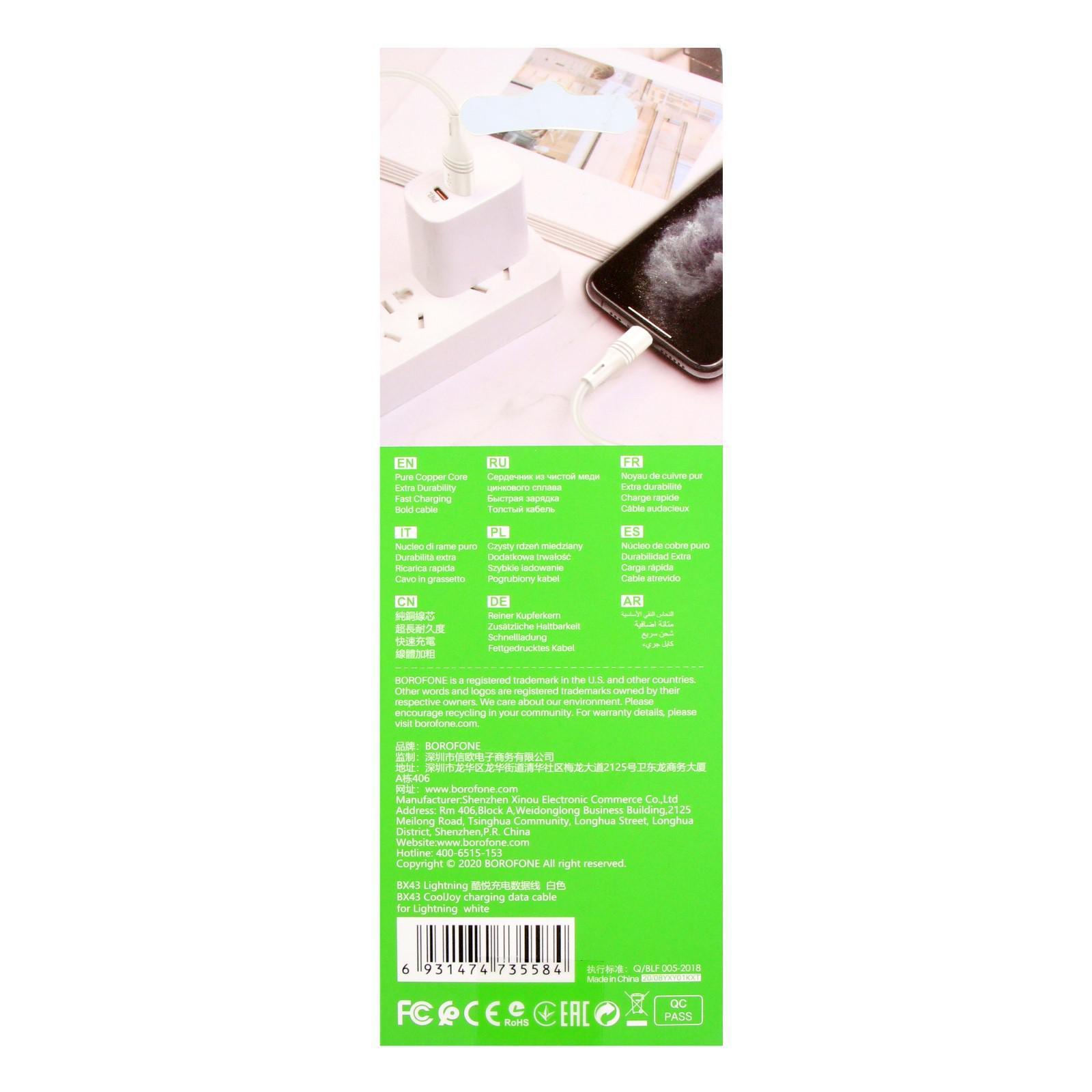 Кабель Borofone BX43, Lightning - USB, 2.4 А, 1 м, PVC оплётка, белый