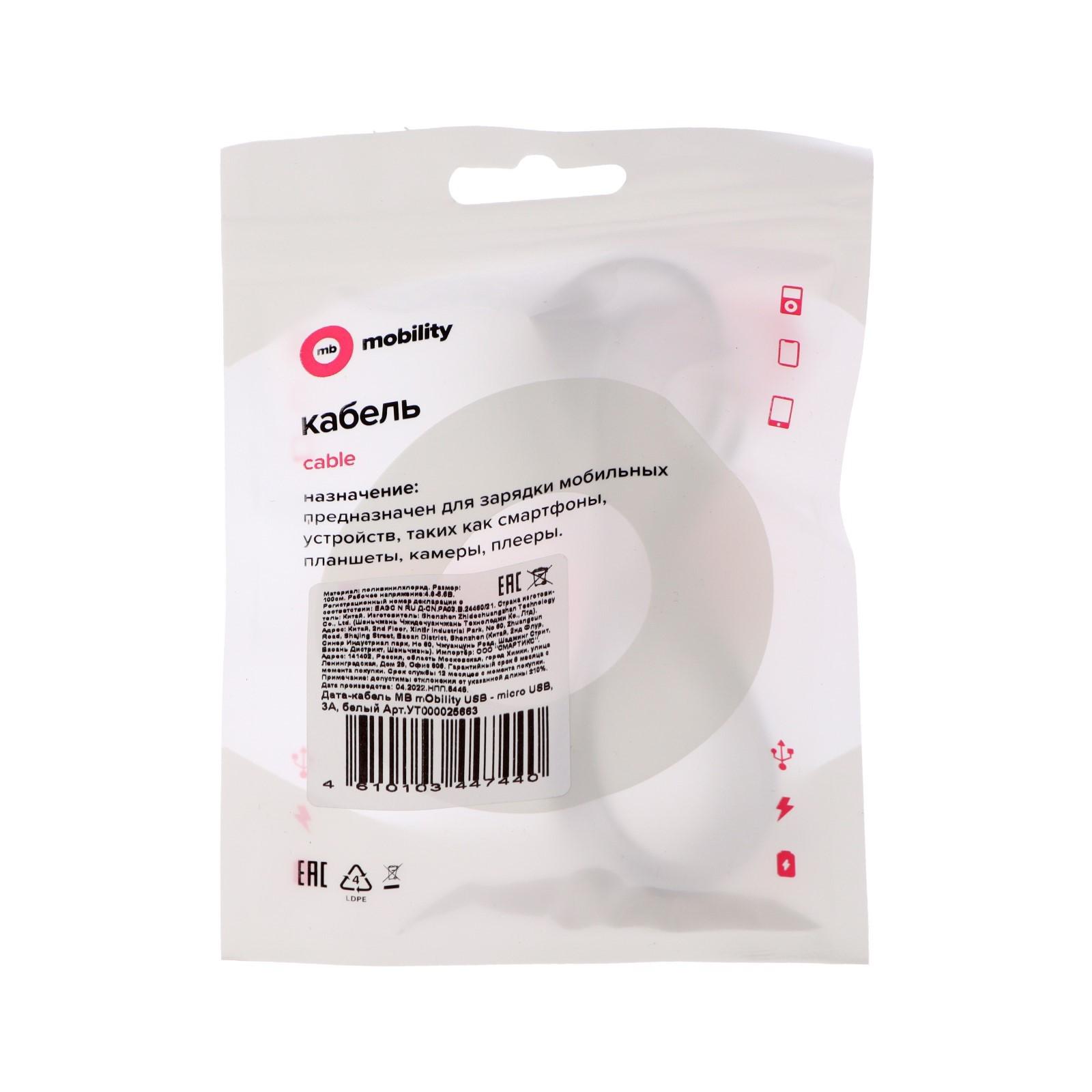 Кабель MB mObility, microUSB - USB, 3 А, 1 м, белый