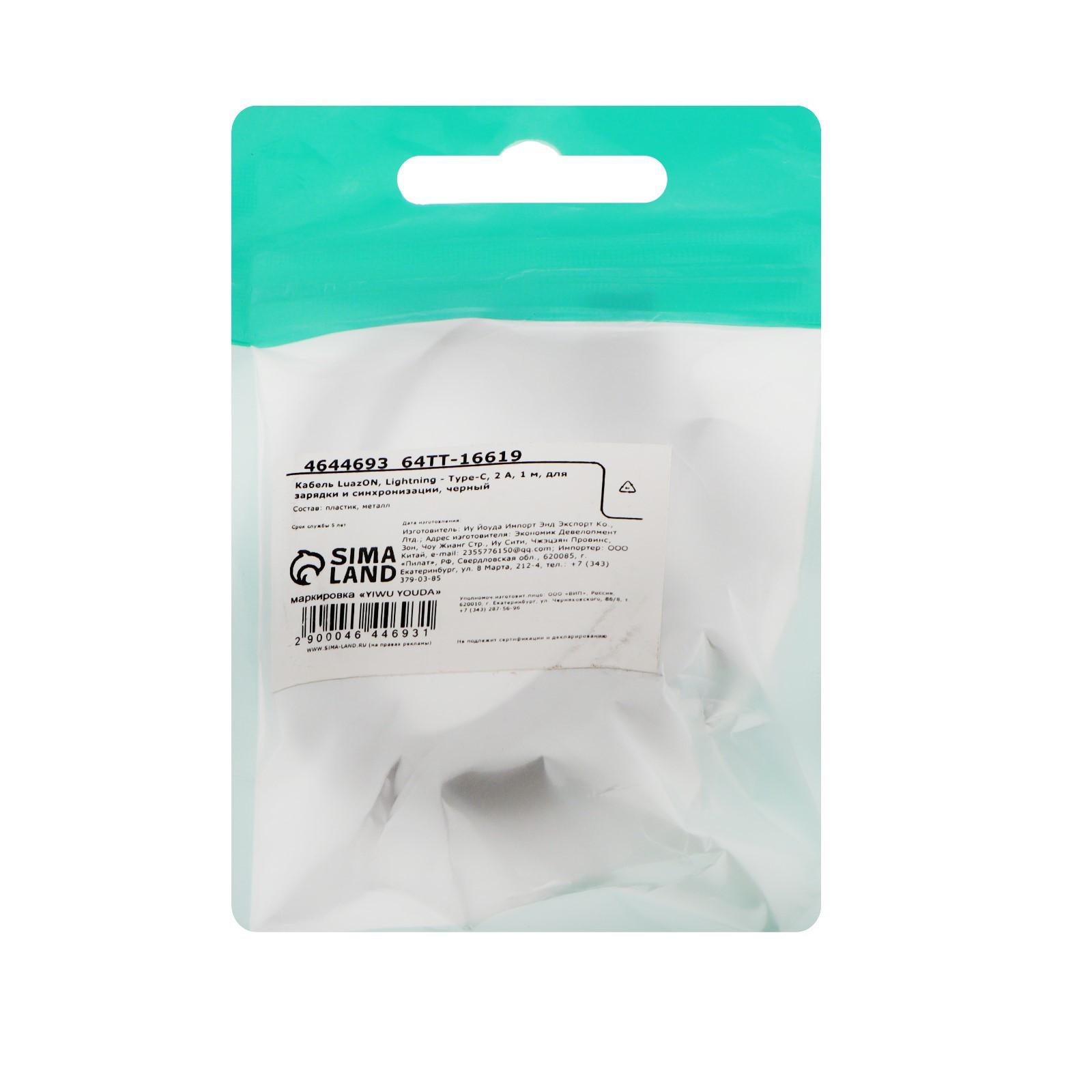 Кабель LuazON, Lightning - Type-C, 2 А, 1 м, для зарядки и синхронизации, черный