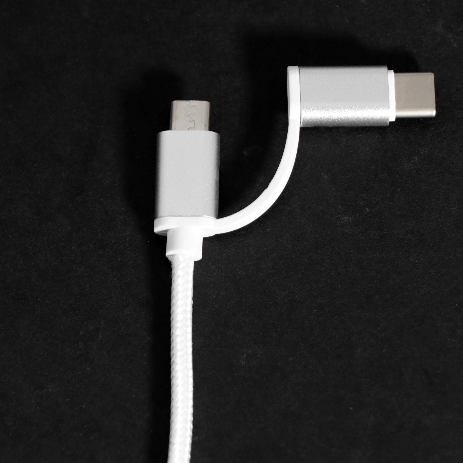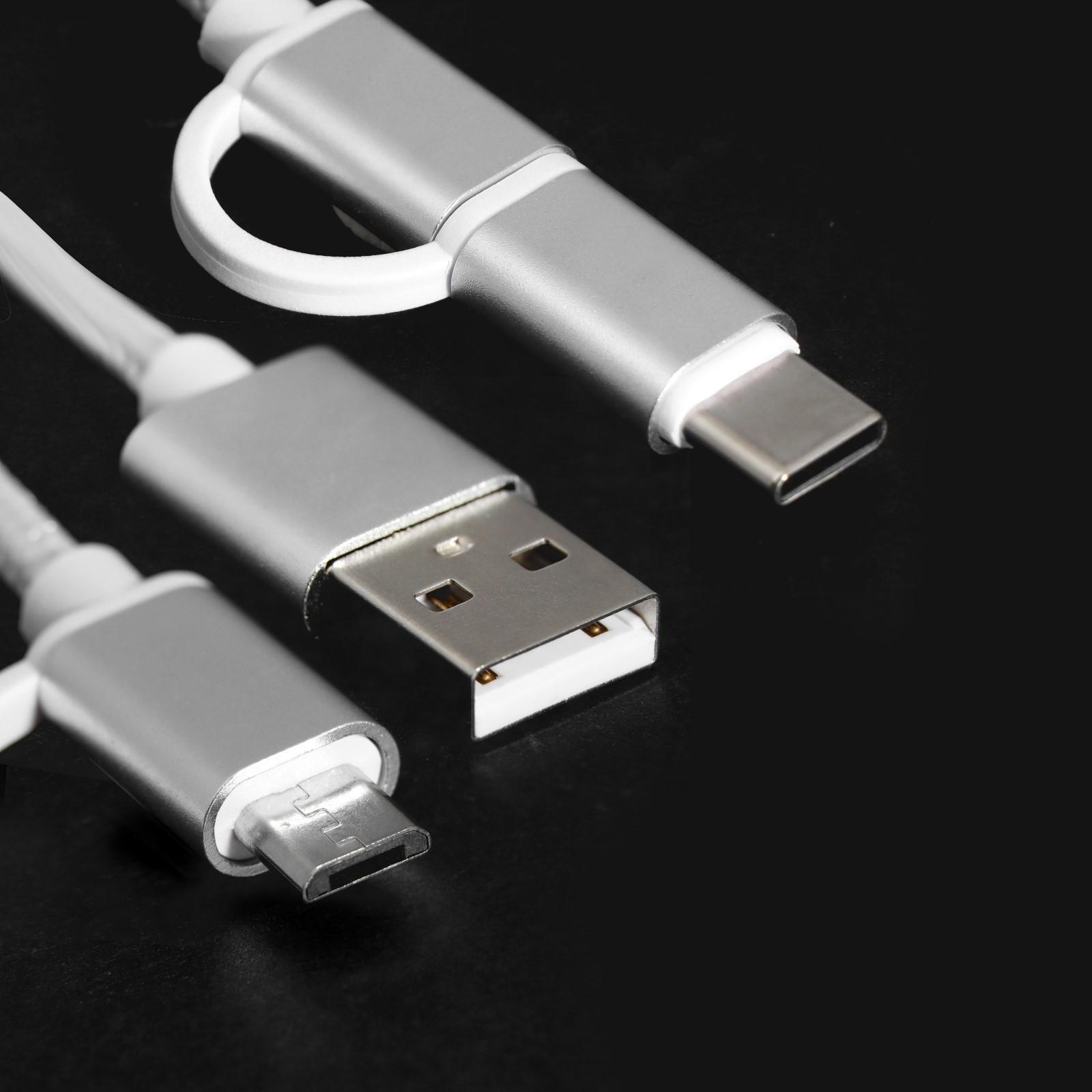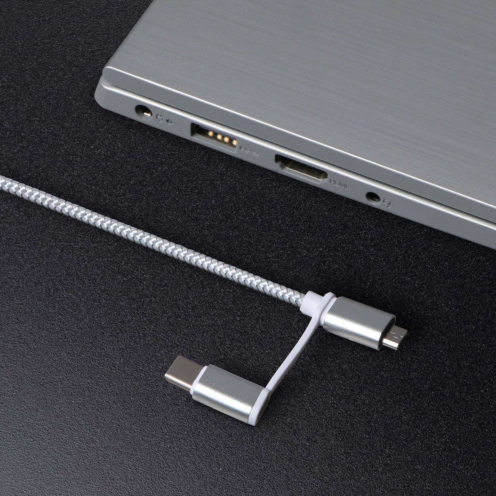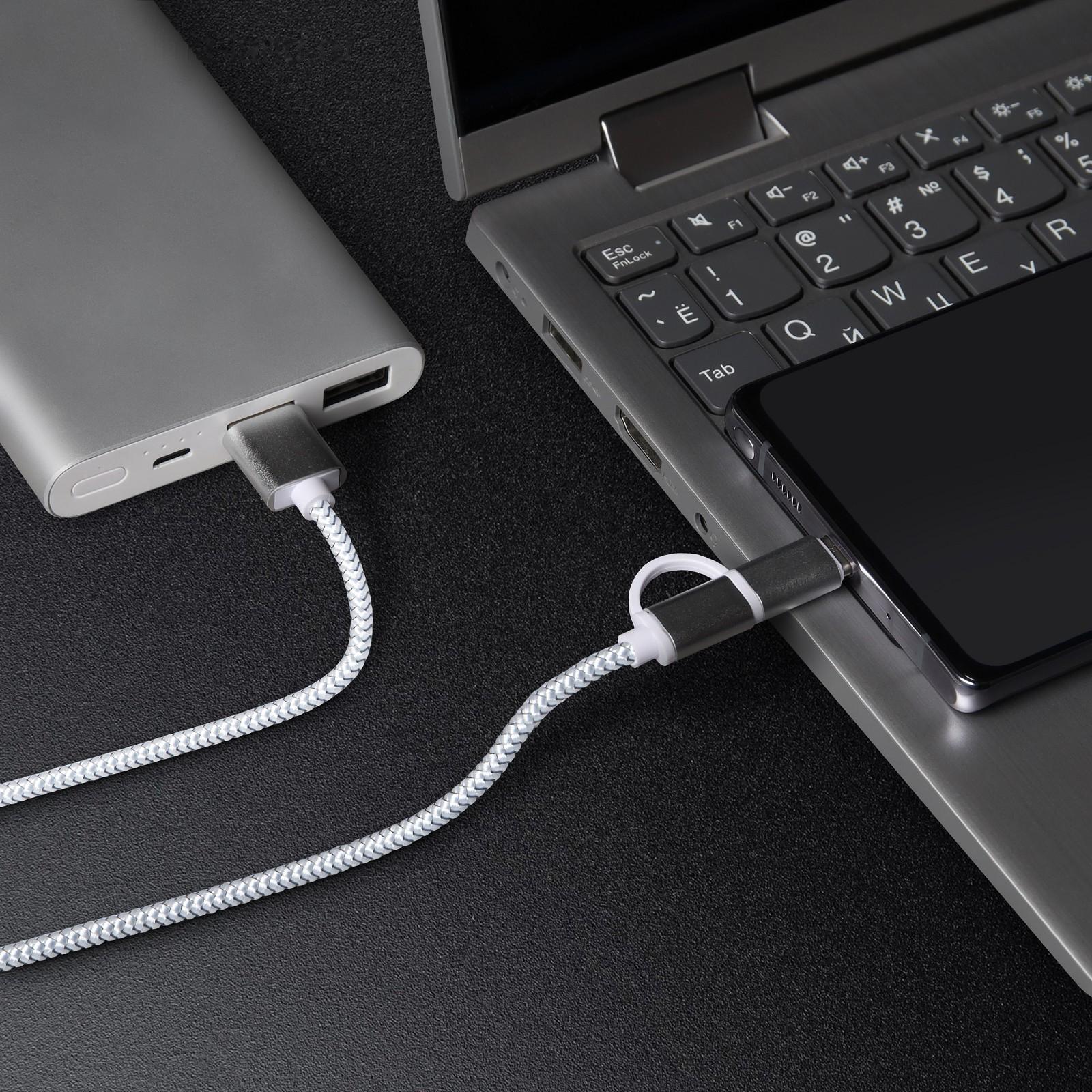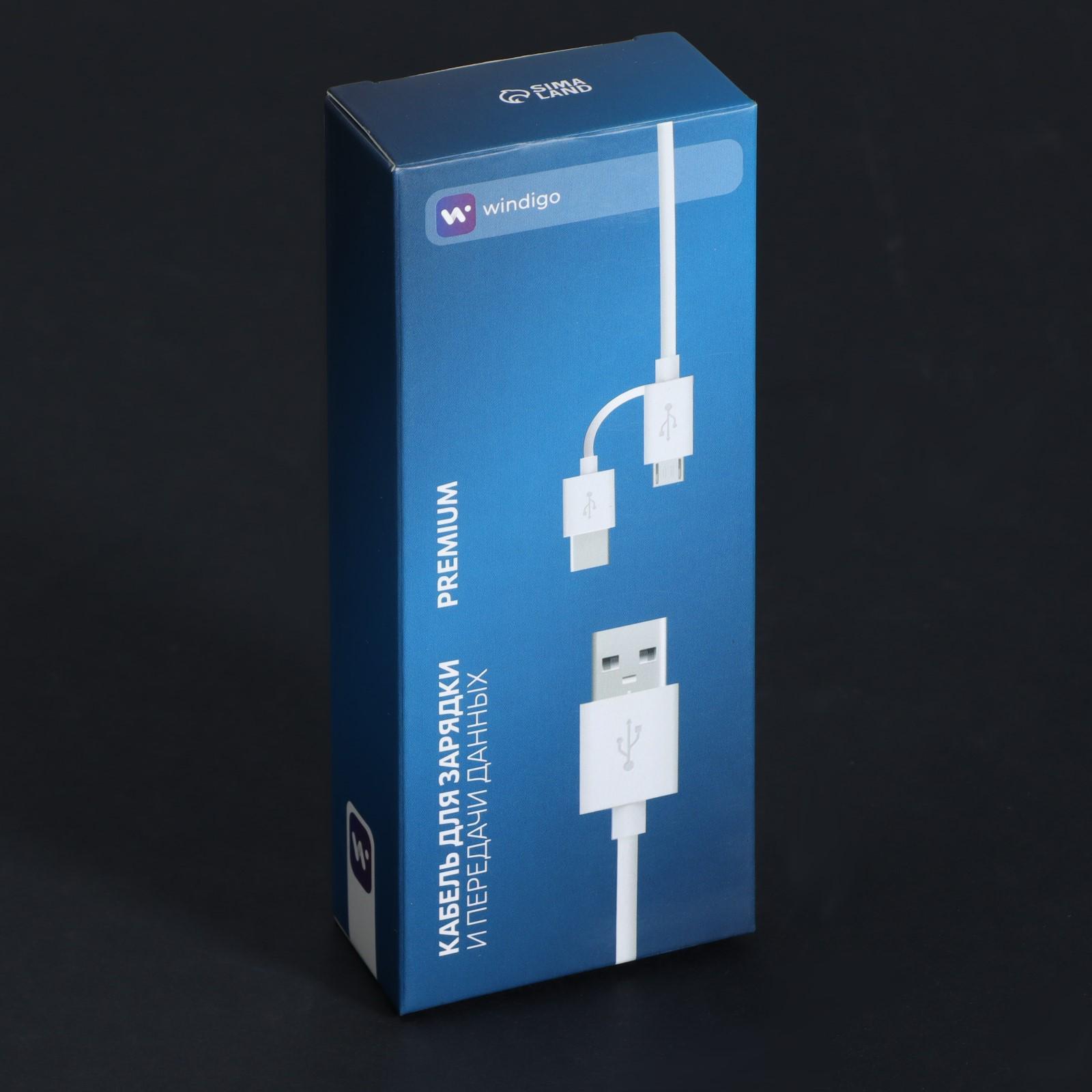 Кабель Windigo, 2 в 1, microUSB/Type-C - USB, 2 А, нейлон оплетка, 1 м, белый