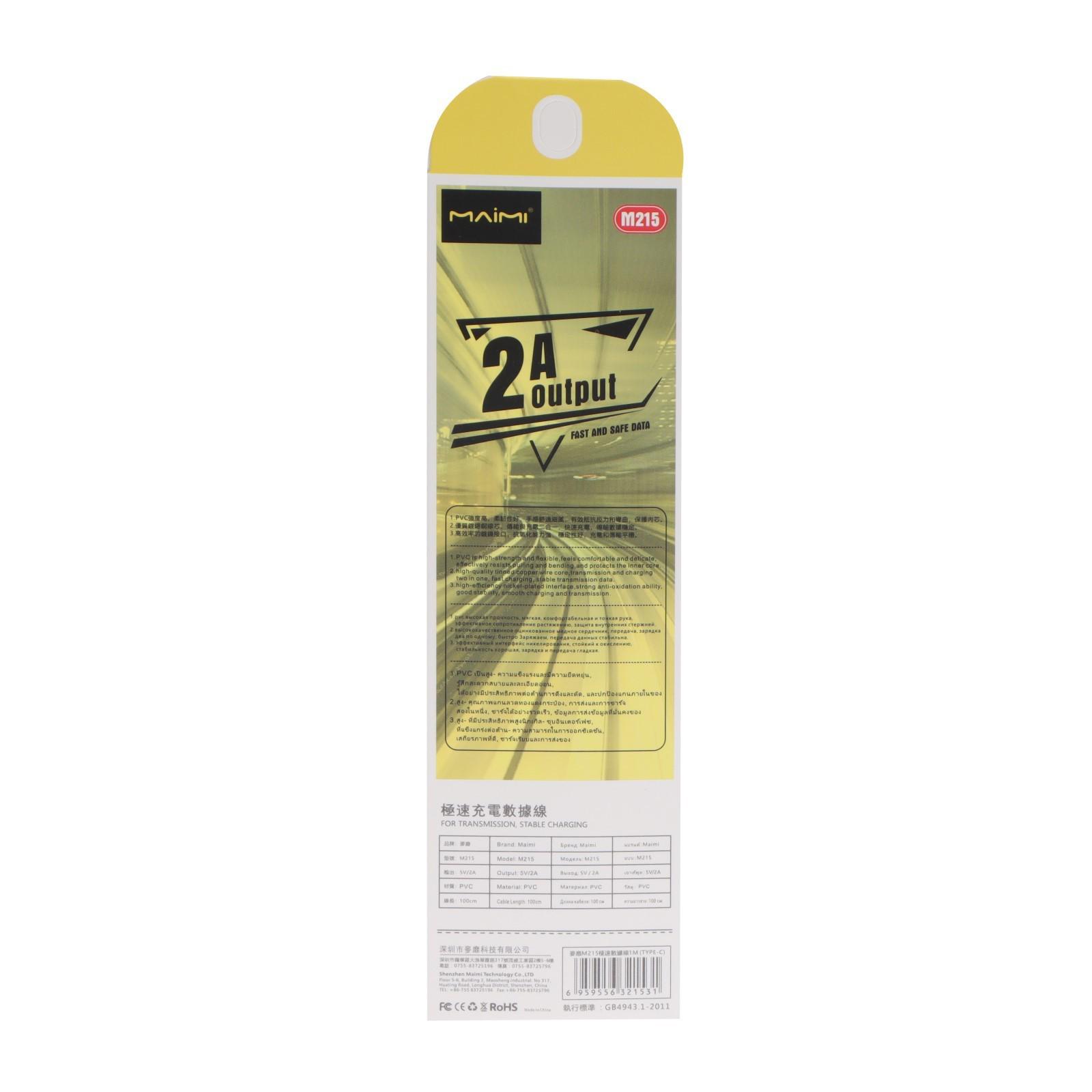 Кабель Maimi M215, Type-C - USB, 2 А, 1 м, белый