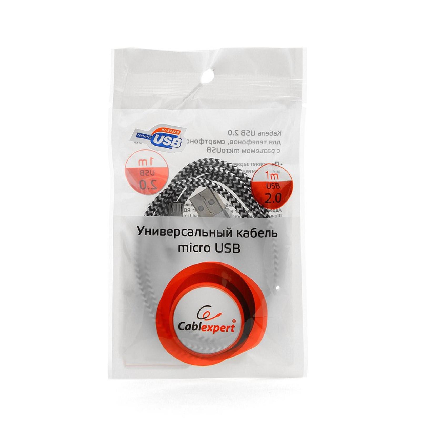 Кабель Cablexpert CC-mUSB2sr1m, microUSB - USB, 1 м, зарядка + передача данных, серебристый