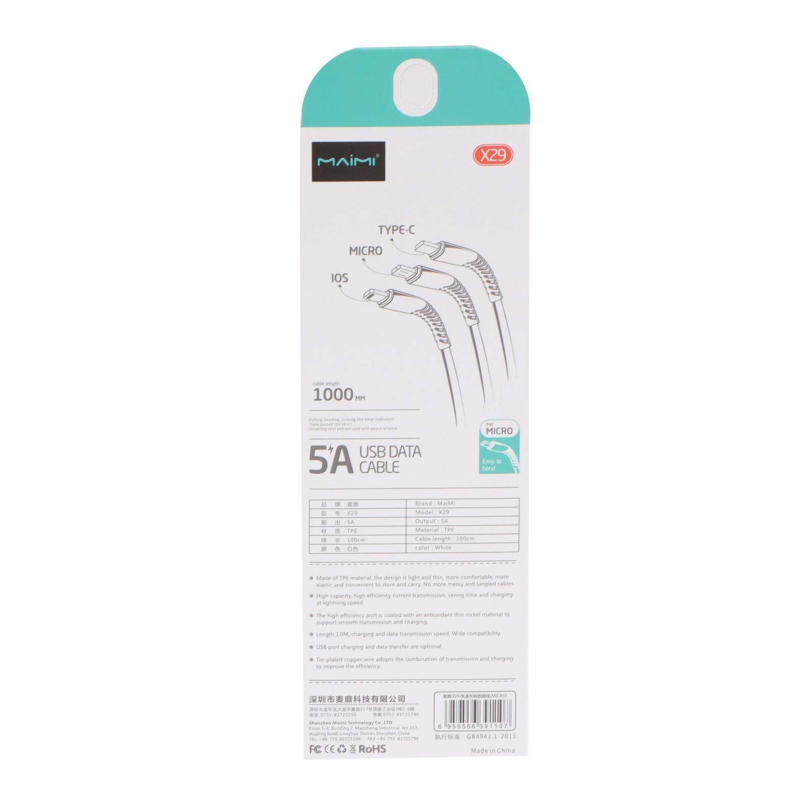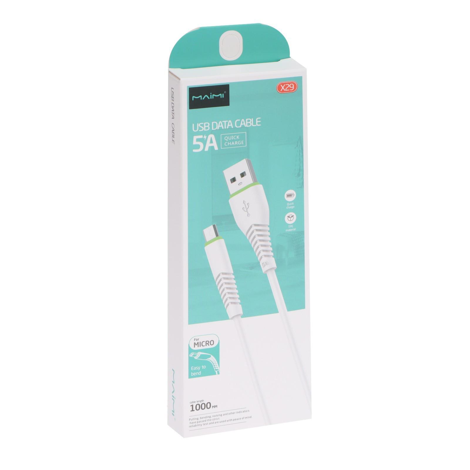 Кабель Maimi X29, microUSB - USB, 5 A, 1 м, белый