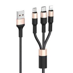 Кабель Hoco X26, microUSB/Lightning/Type-C - USB, 2 А, 1 м, нейлон оплетка, черно-золотистый