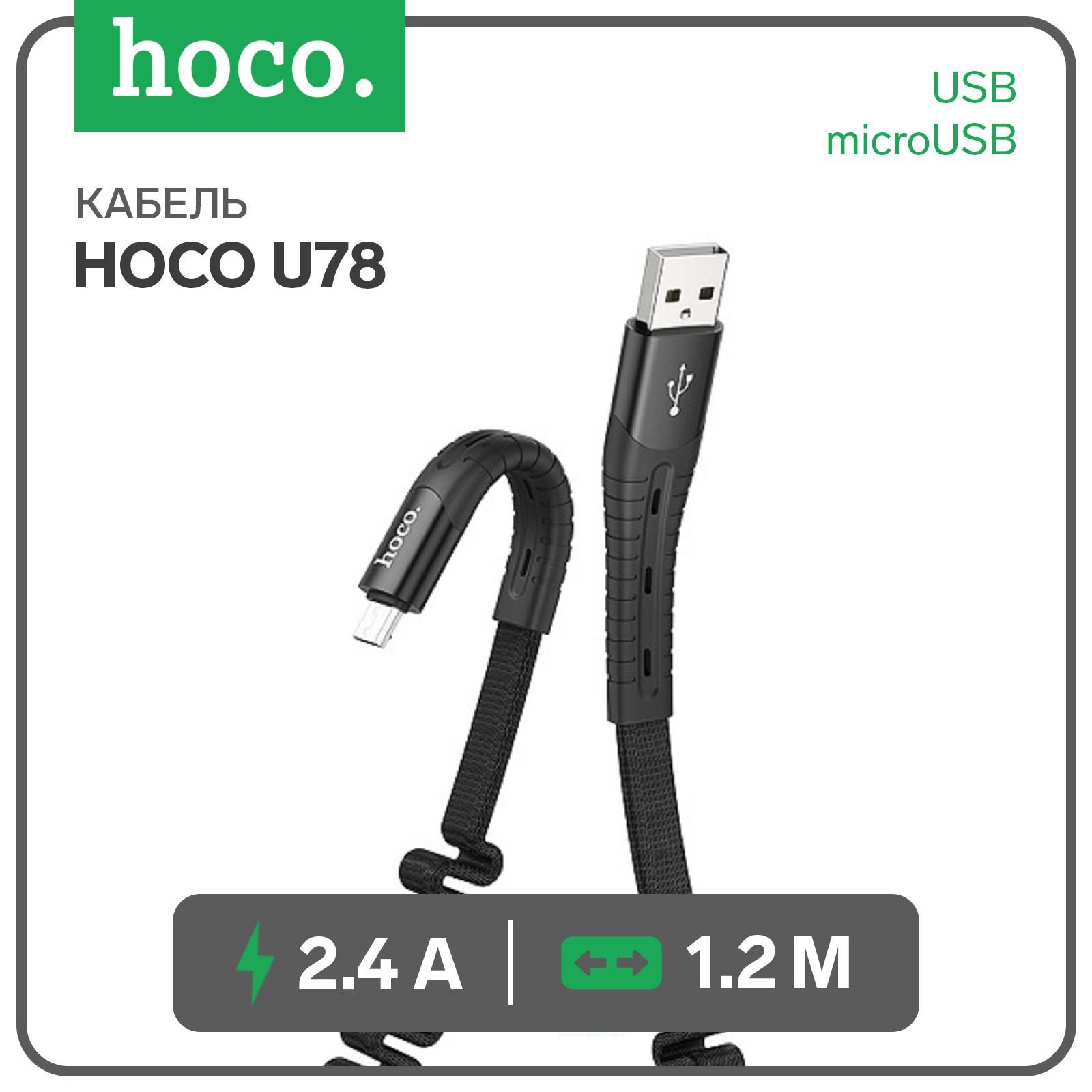 Кабель Hoco U78, USB - microUSB, 2.4 А, 1.2 м, тканевая оплетка, черный