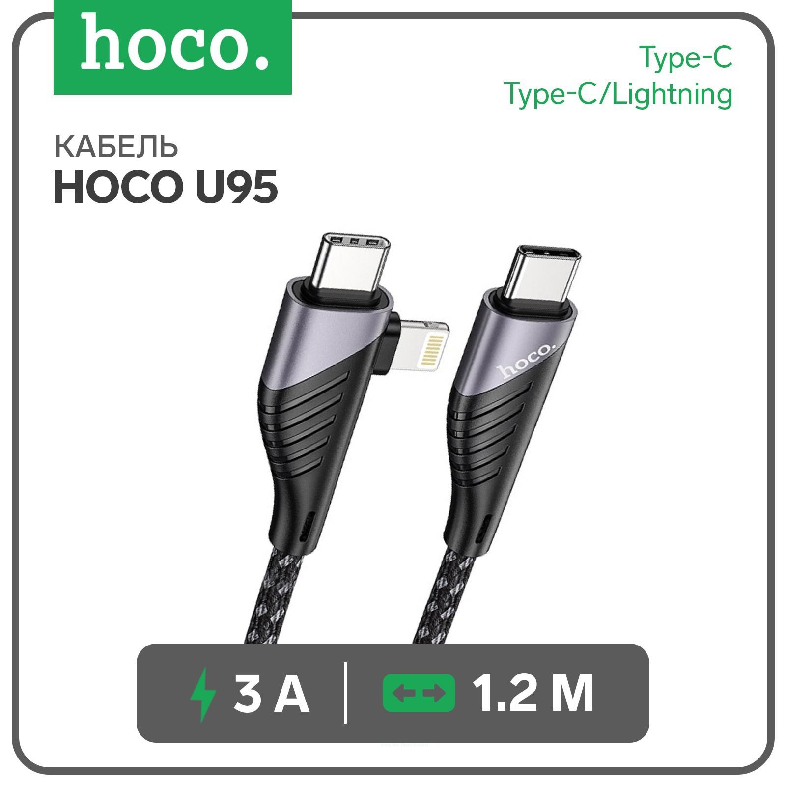 Кабель Hoco U95, Type-C - Type-C/Lightning, на C до 60 Вт, на iP до 20 Вт, 3 А, 1.2 м,черный