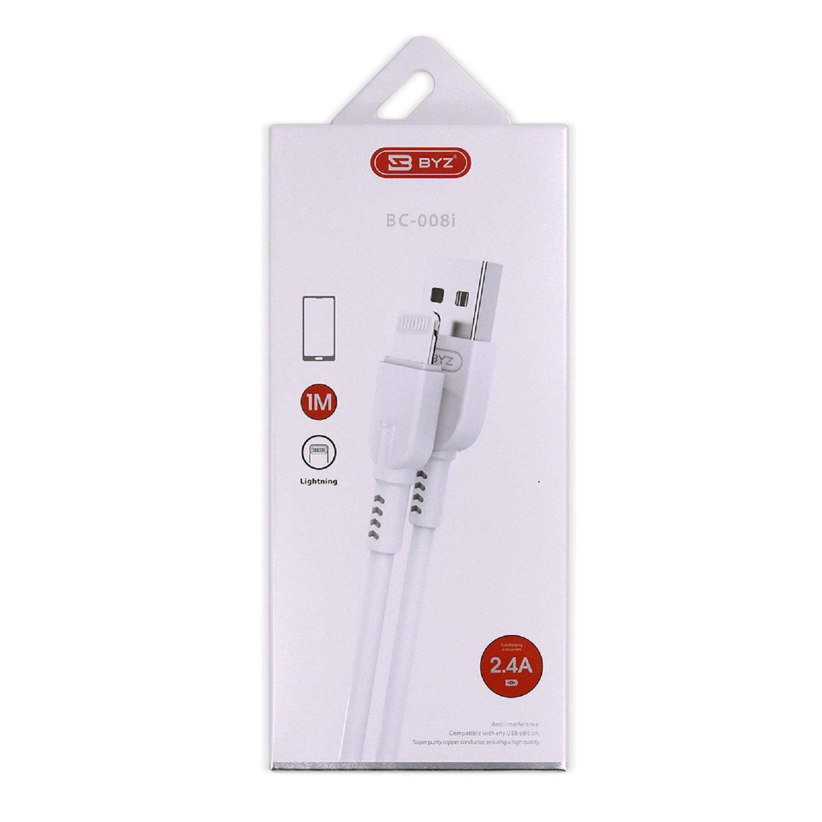 Кабель BYZ BC-008i, USB - Lightning, 2.4 А, 1 м, силиконовый, белый