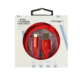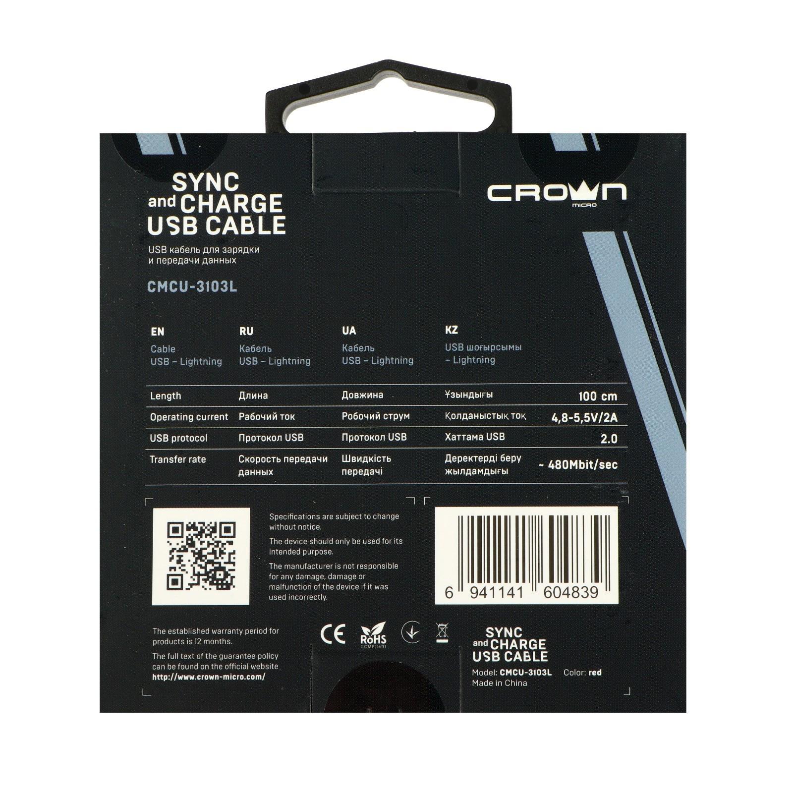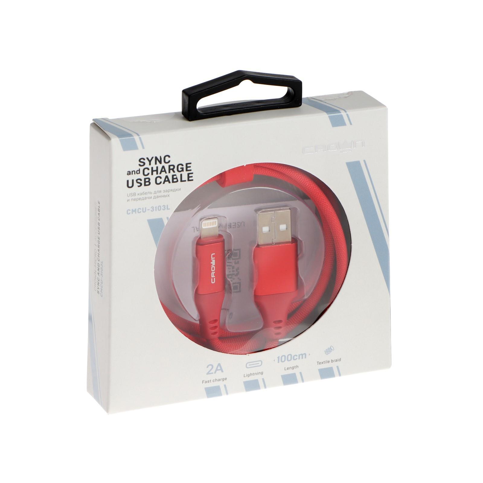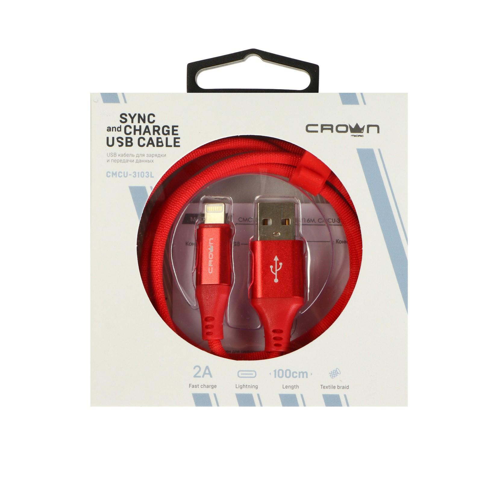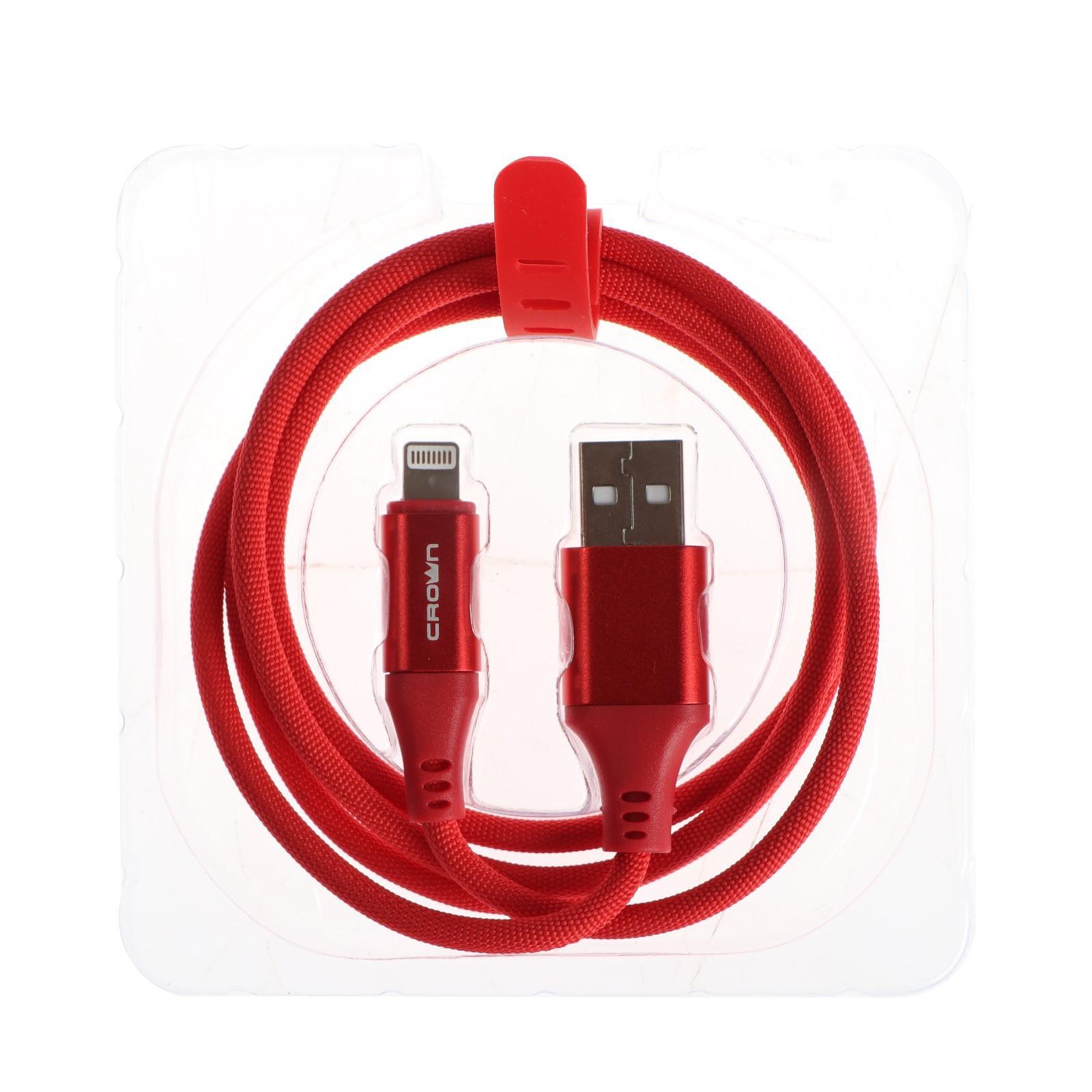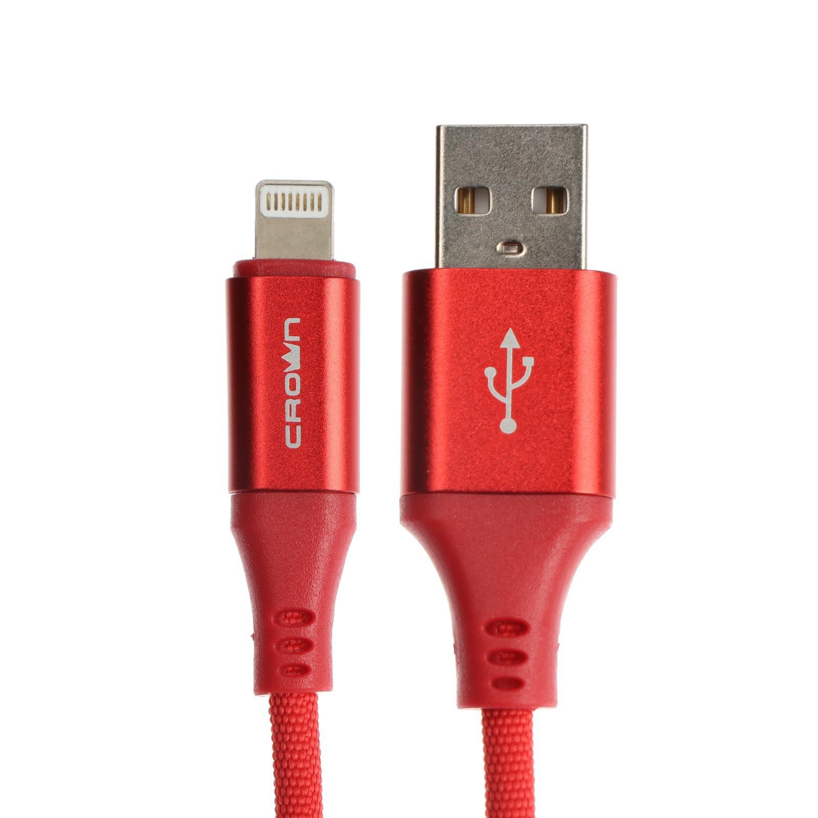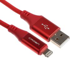 Кабель Crown CMCU-3016L, Lightning - USB, 2 А, 1 м, зарядка/передача данных, ПВХ, красный