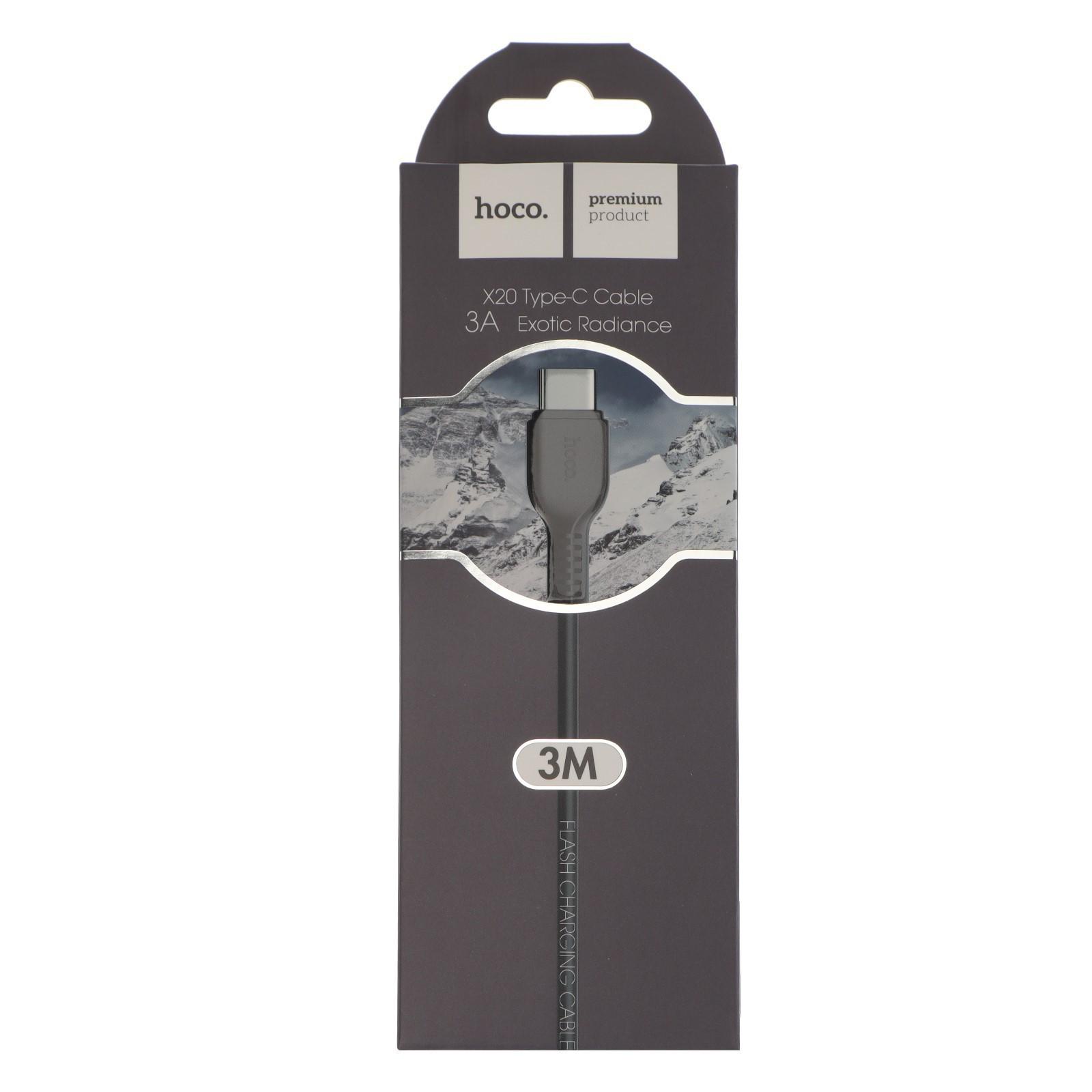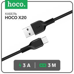 Кабель Hoco X20, Type-C - USB, 3 А, 3 м, PVC оплетка, черный