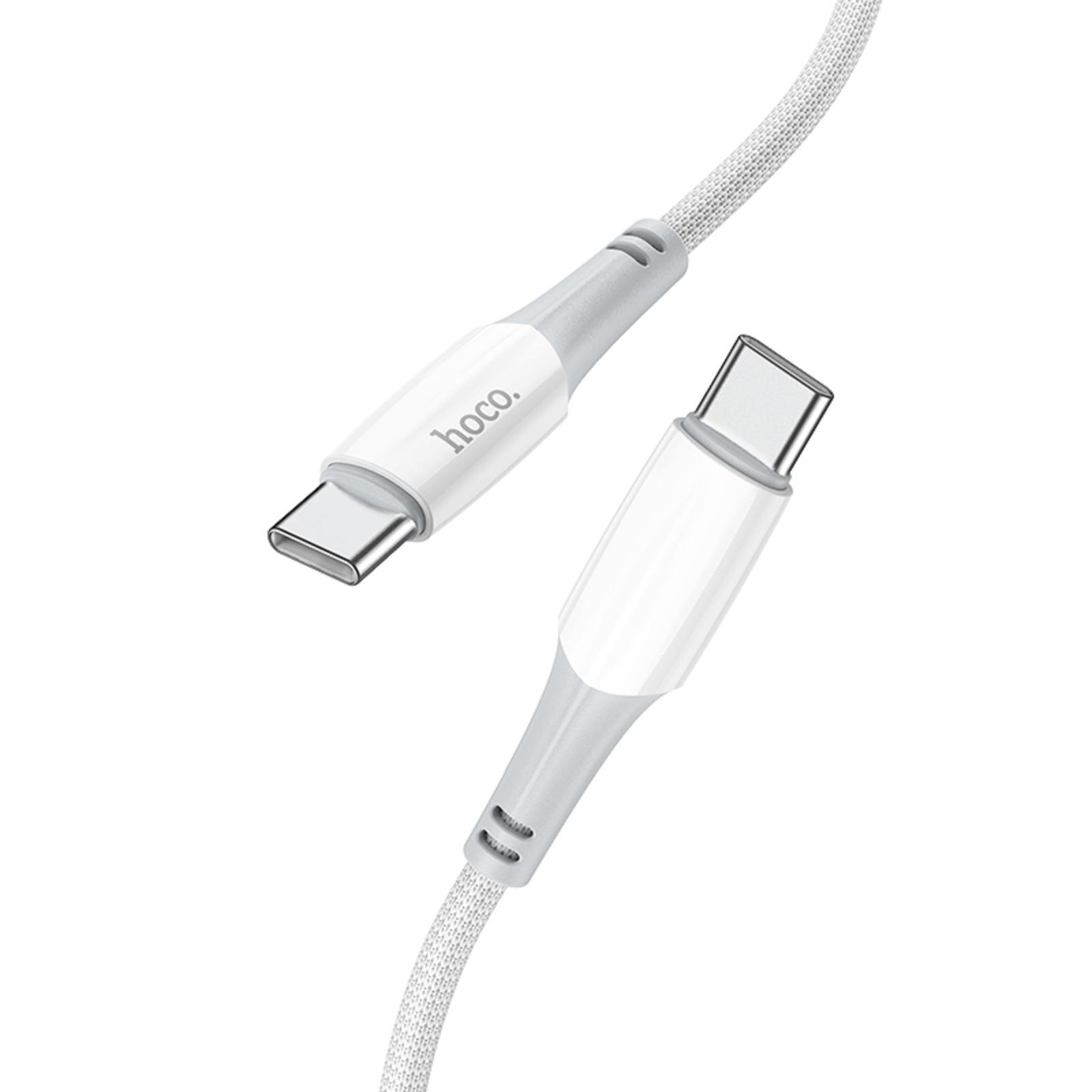 Кабель Hoco X70, Type-C - Type-C, 60 Вт (зарядка ноутбука), 3 А, 1 м, нейлон оплетка, белый