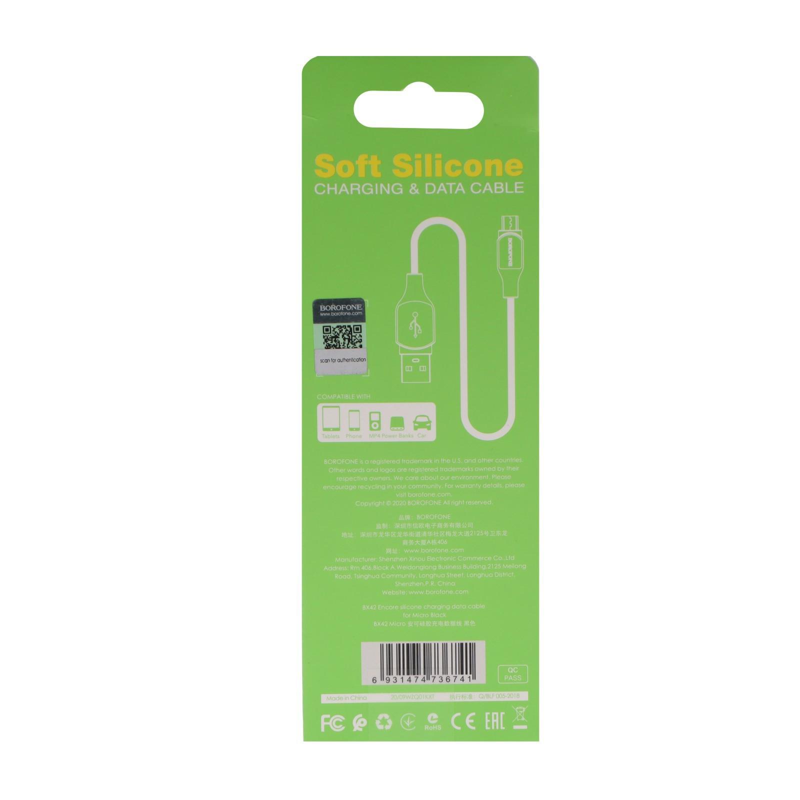 Кабель Borofone BX42, microUSB - USB, 2.4 А, 1 м, TPE оплётка, чёрный