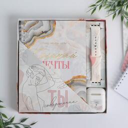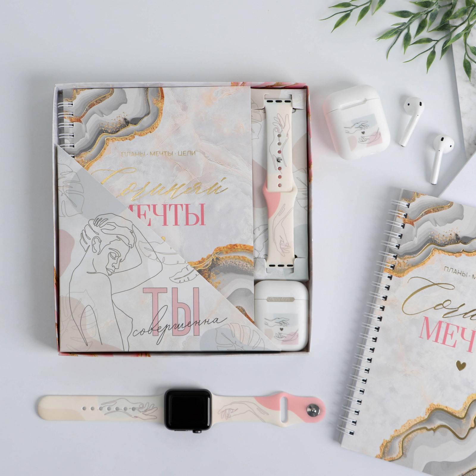 Набор: ремень для часов, ежедневник и чехол для наушников «Ты совершенна», 20 х 22 см