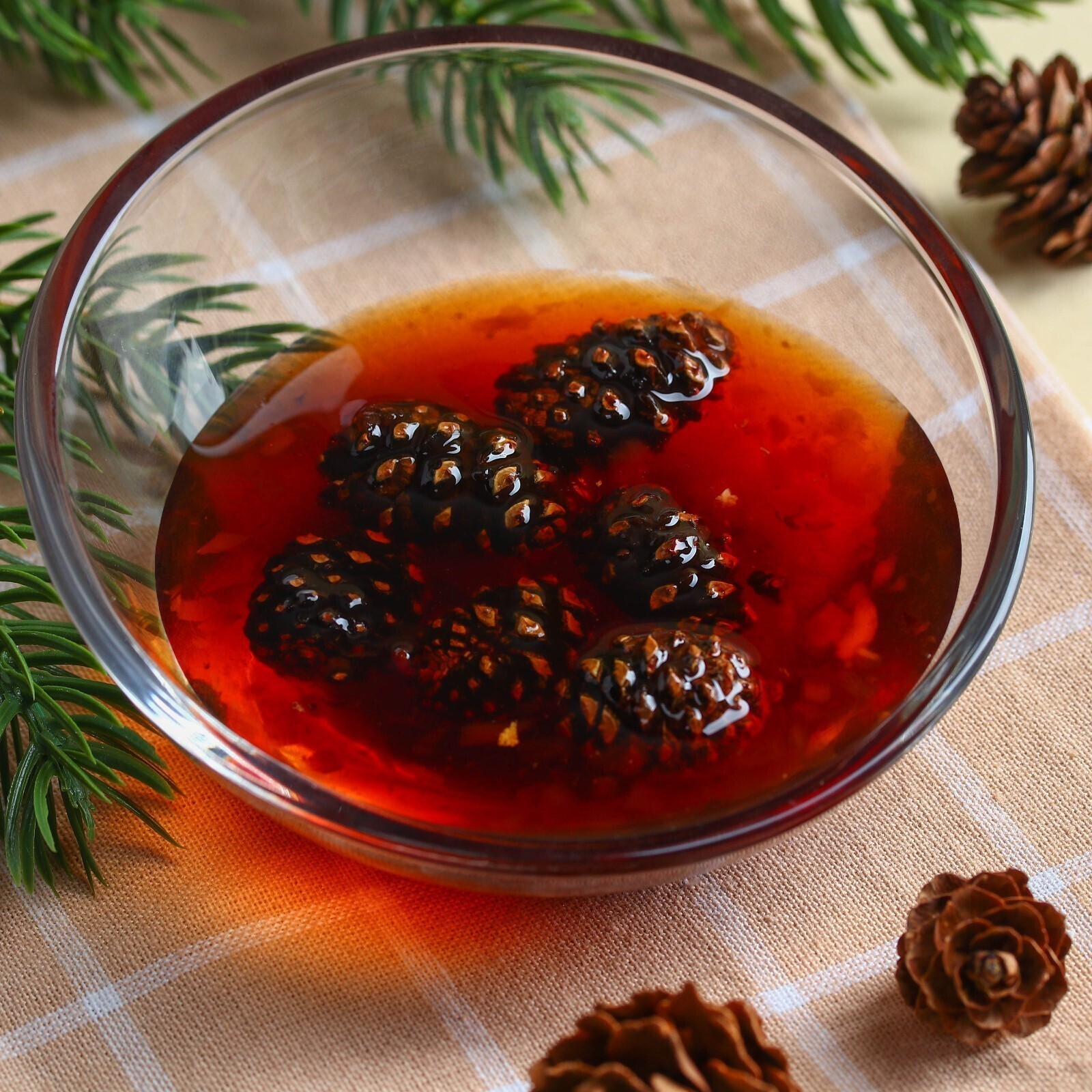 Состав: сахар, вода питьевая, шишки сосновые зелёные, витамин С.