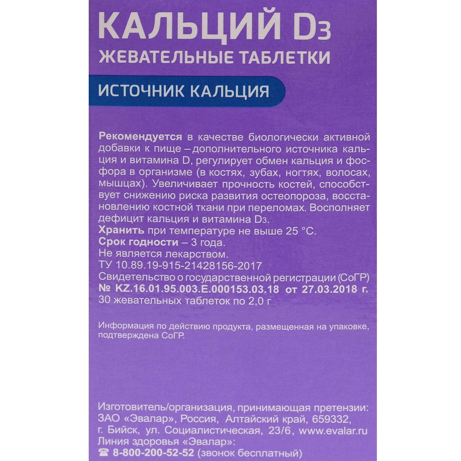 Сбалансированный состав жевательных таблеток Кальций D3 Эвалар:
