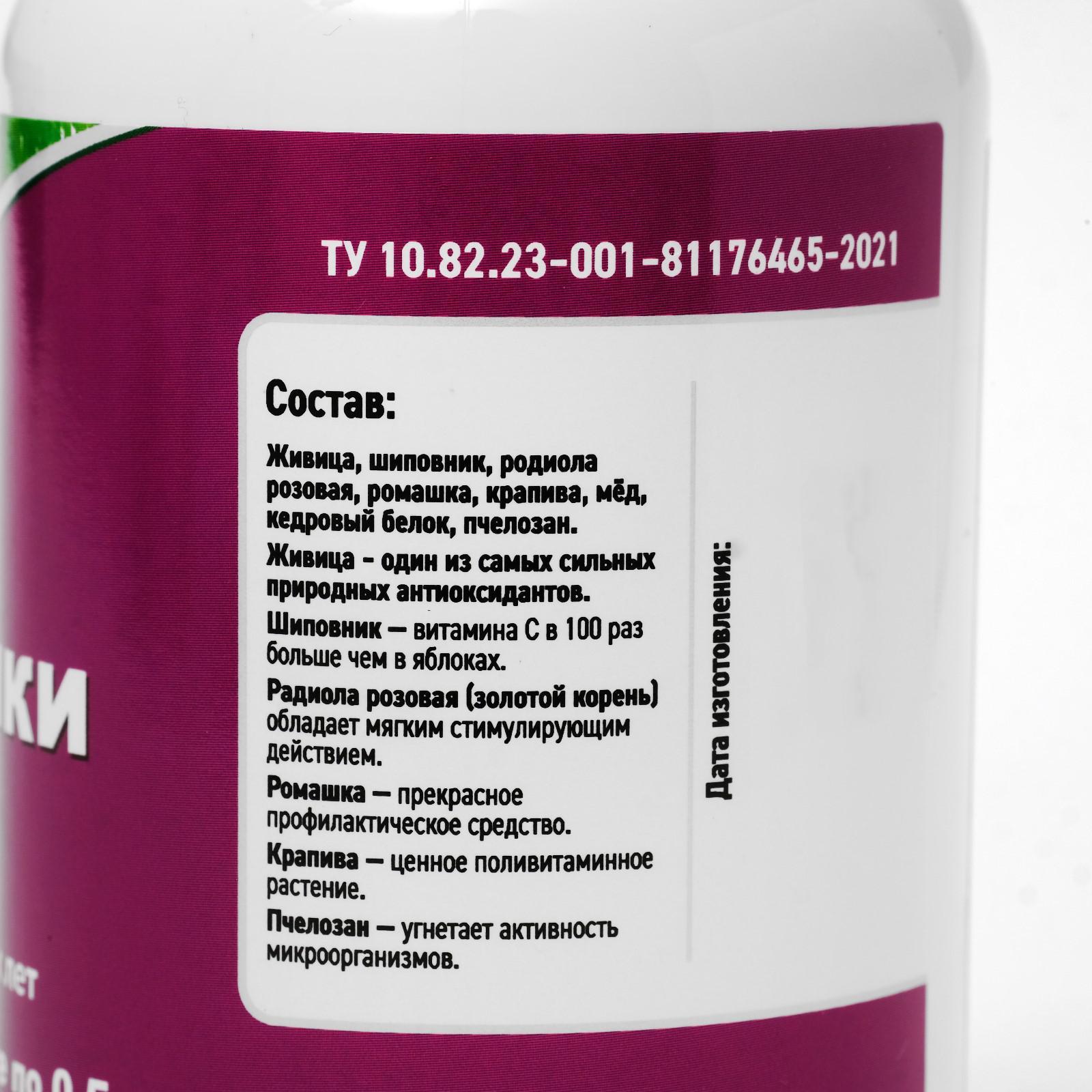Полностью натуральные витамины для детей. Сделаны из кедрового белка, живицы, ромашки, золотого корня, крапивы, шиповника, мёда, и микродоз пчелозана (хитозан из пчёл).