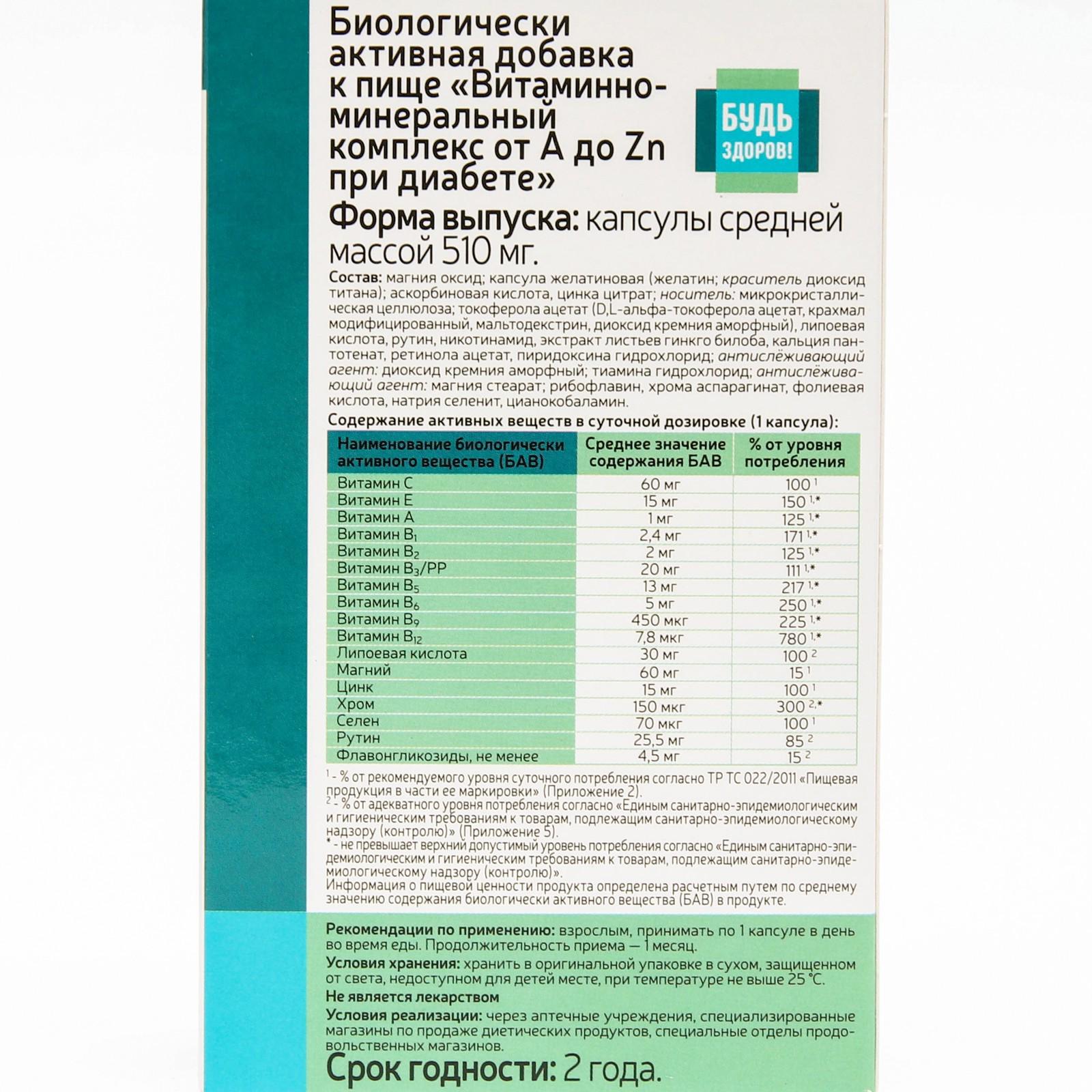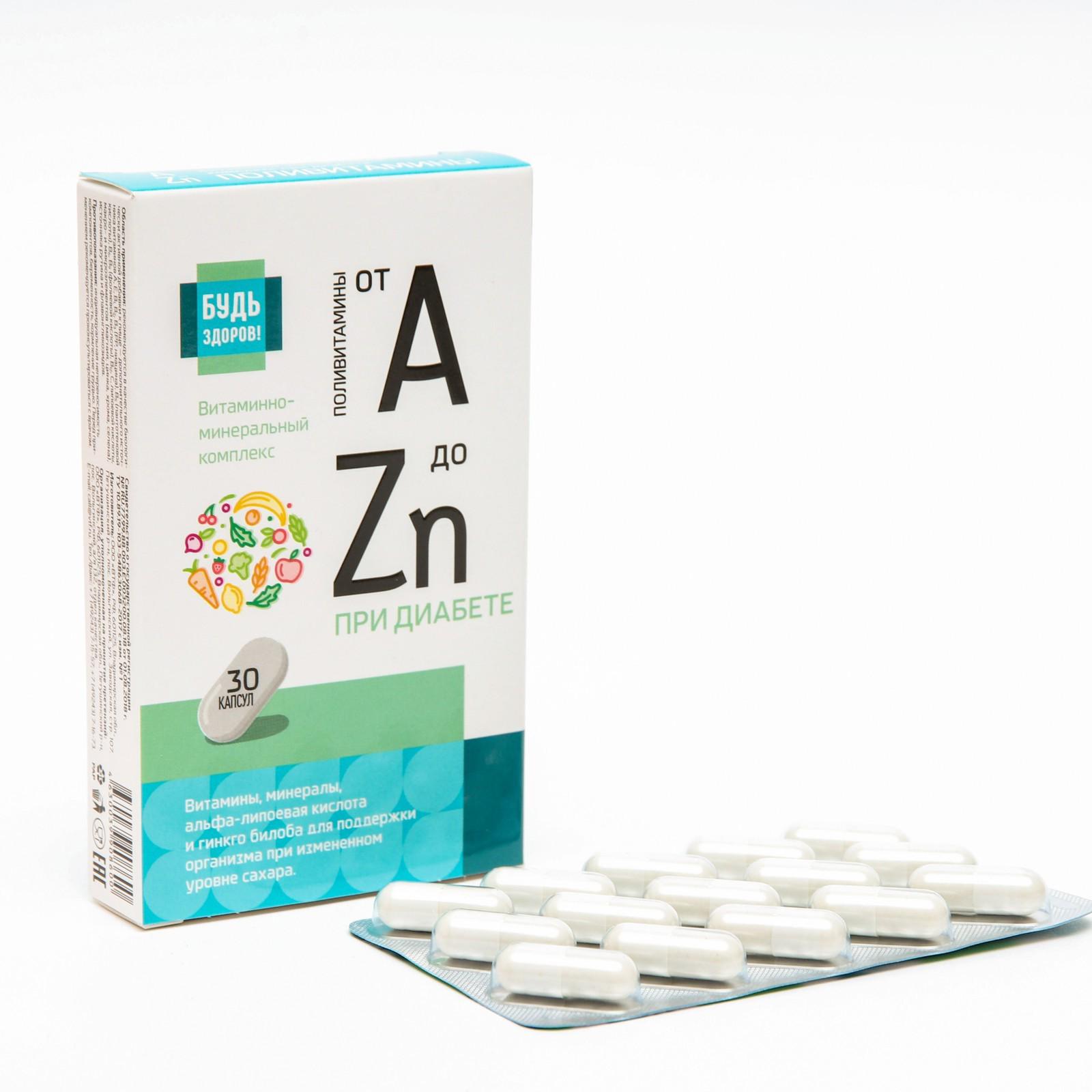 Витаминно-минеральный комплекс от A до Zn Будь Здоров! при диабете, 30 капсул по 510 мг