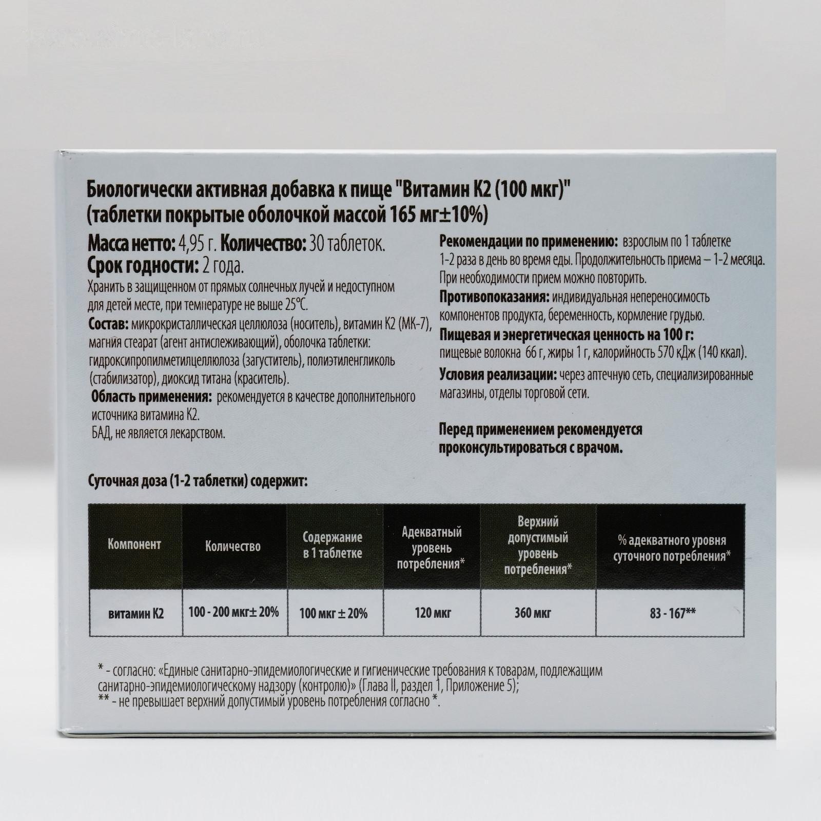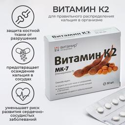 Витамин К2, здоровье сердца и костной ткани, 30 таблеток