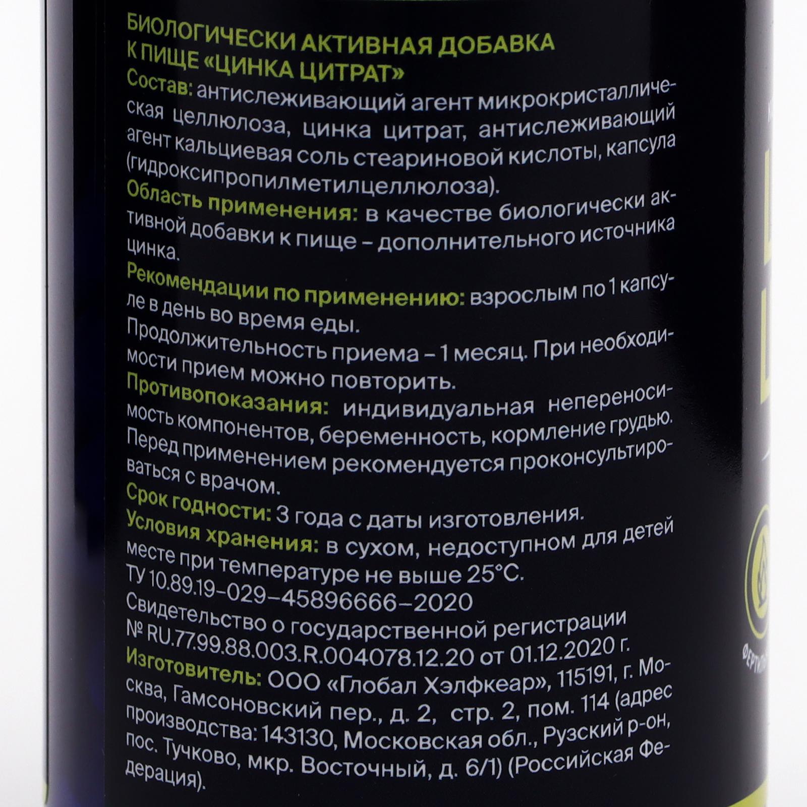 Состав: 1 вегетарианская капсула (суточная доза) содержит: цинка цитрат — 78 мг. (в том числе цинка 25 мг.)