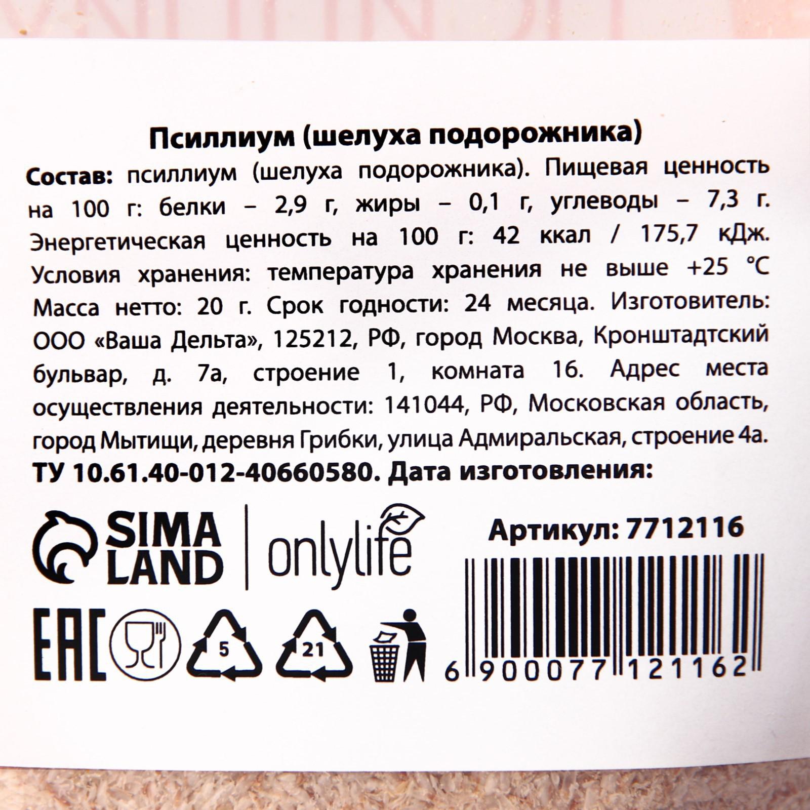 Состав: псиллиум (шелуха подорожника).