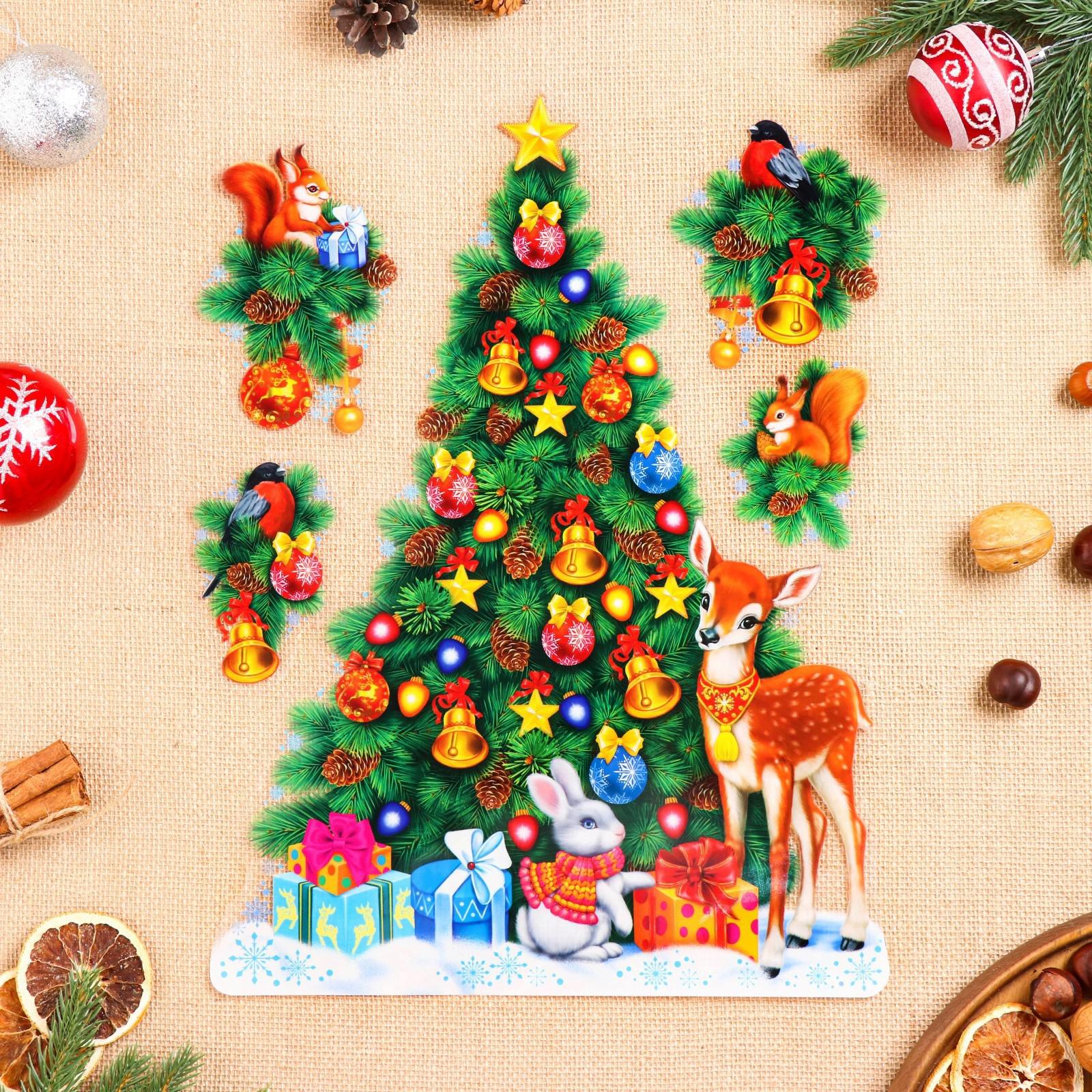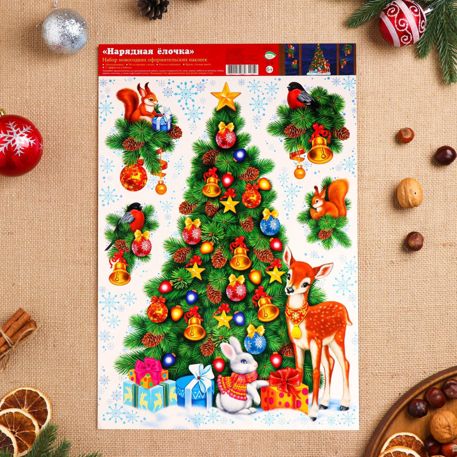Набор наклеек оформительский "Нарядная ёлочка" 49,3х33,6см