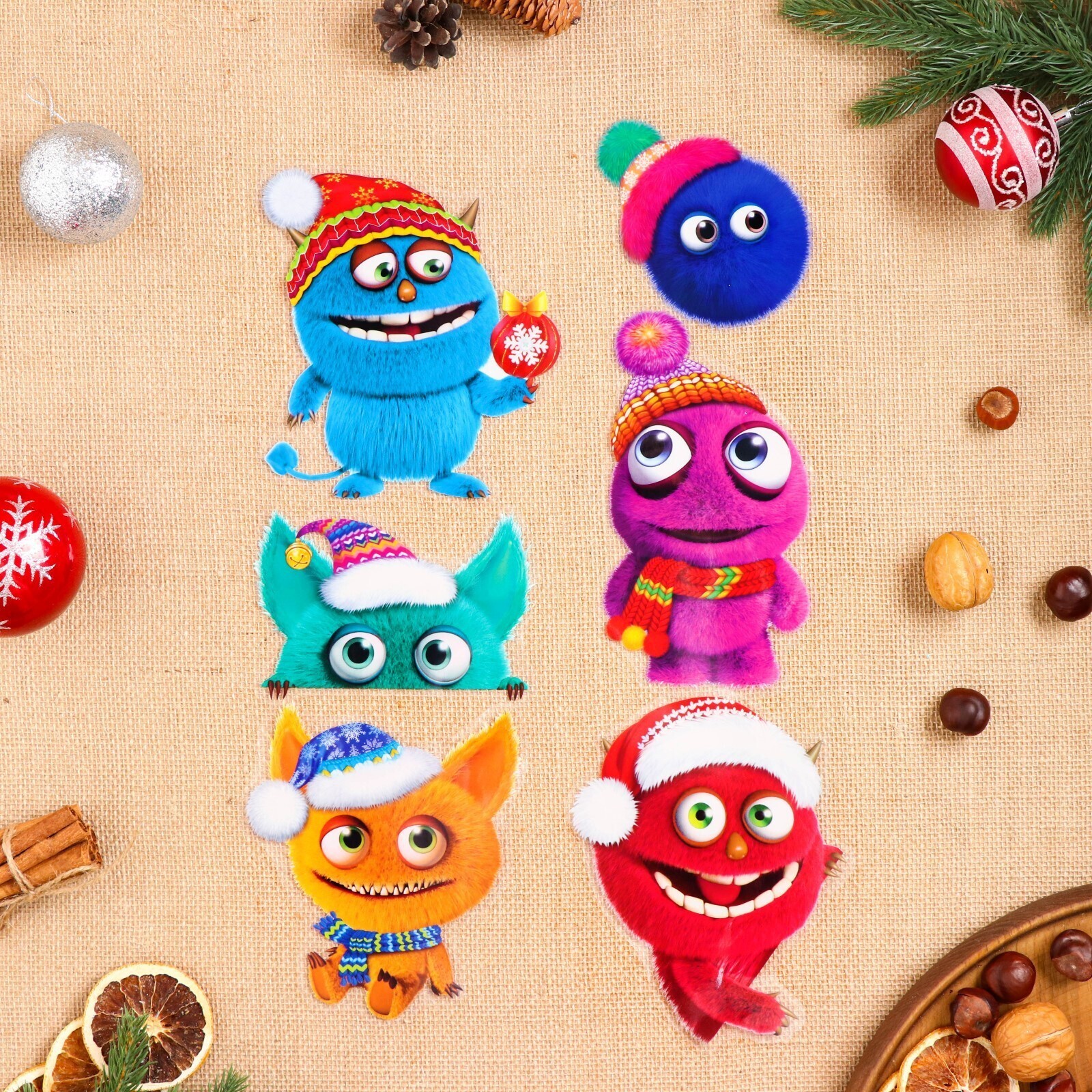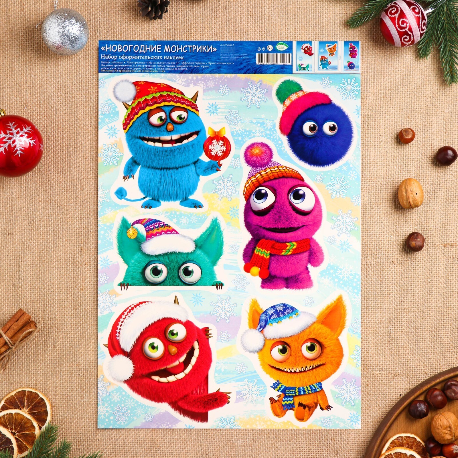 Набор наклеек оформительский "Новогодние монстрики" 49,3х33,6см
