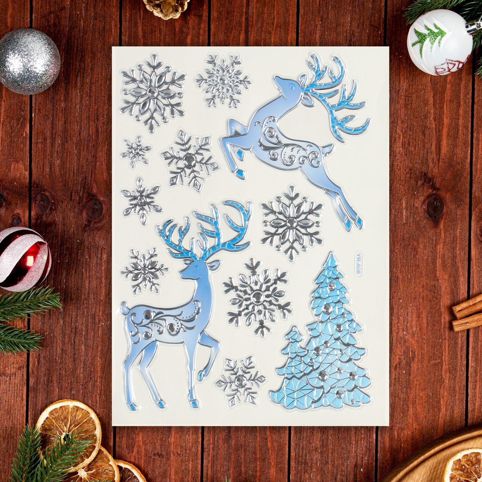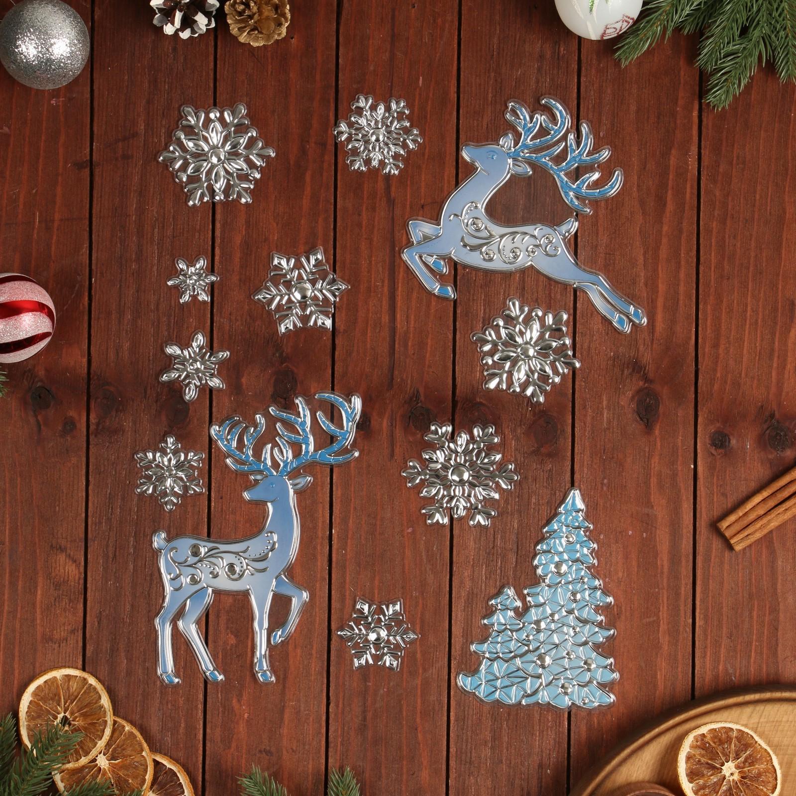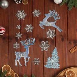 Наклейки на окна "Новогодние" олени, снежинки, 43 х 28 см